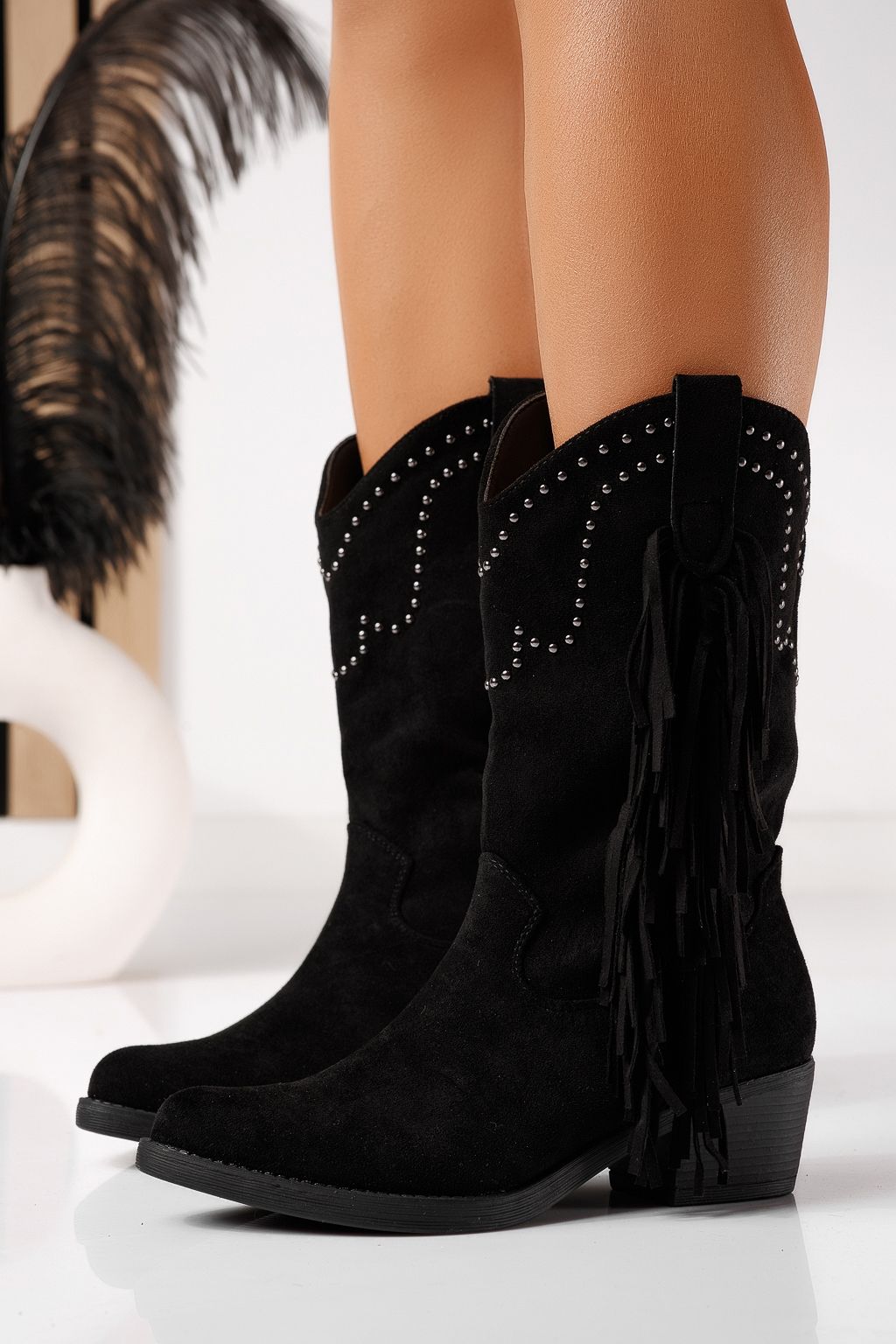 Дамски ботуши ватирани черни от обърната еко кожа Leila #22931