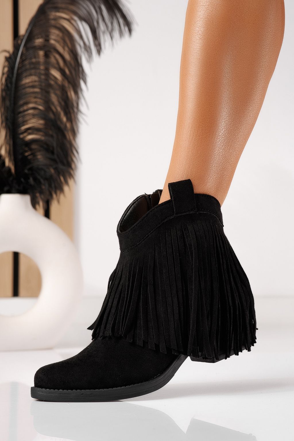 Дамски ботуши ватирани черни от обърната еко кожа Nadia #22936