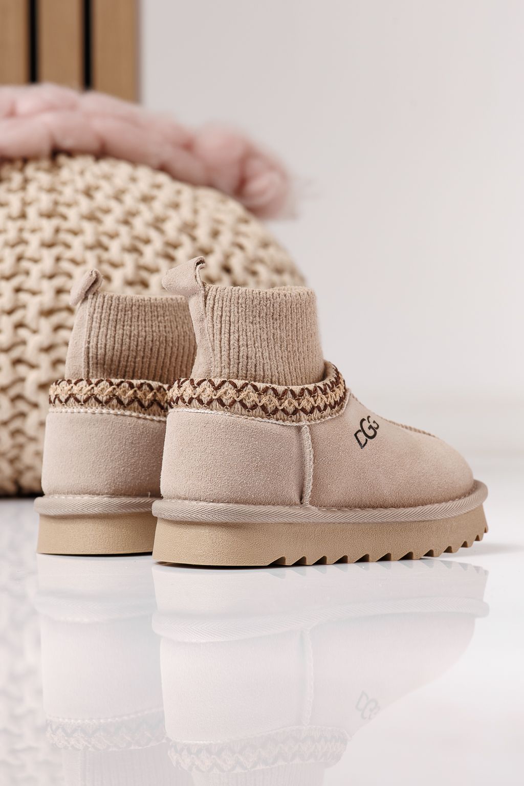 Боти за момичета подплатени с пух бежови от обърната естествена кожа Carla #22960