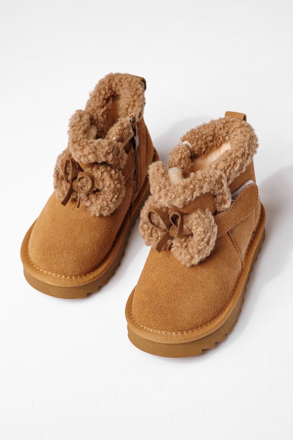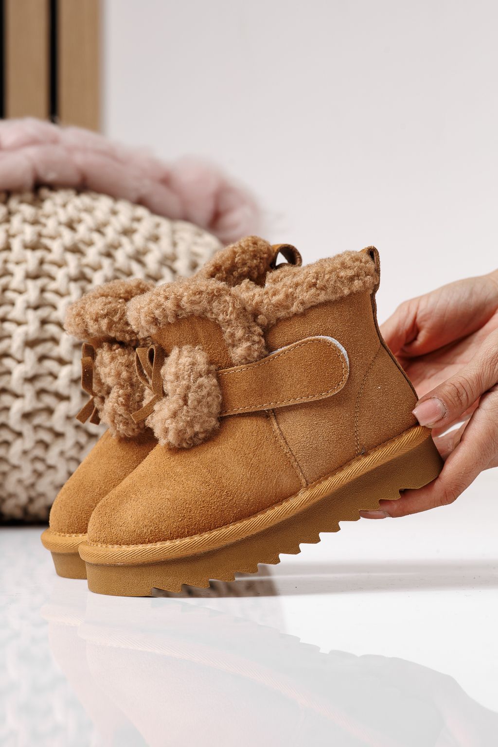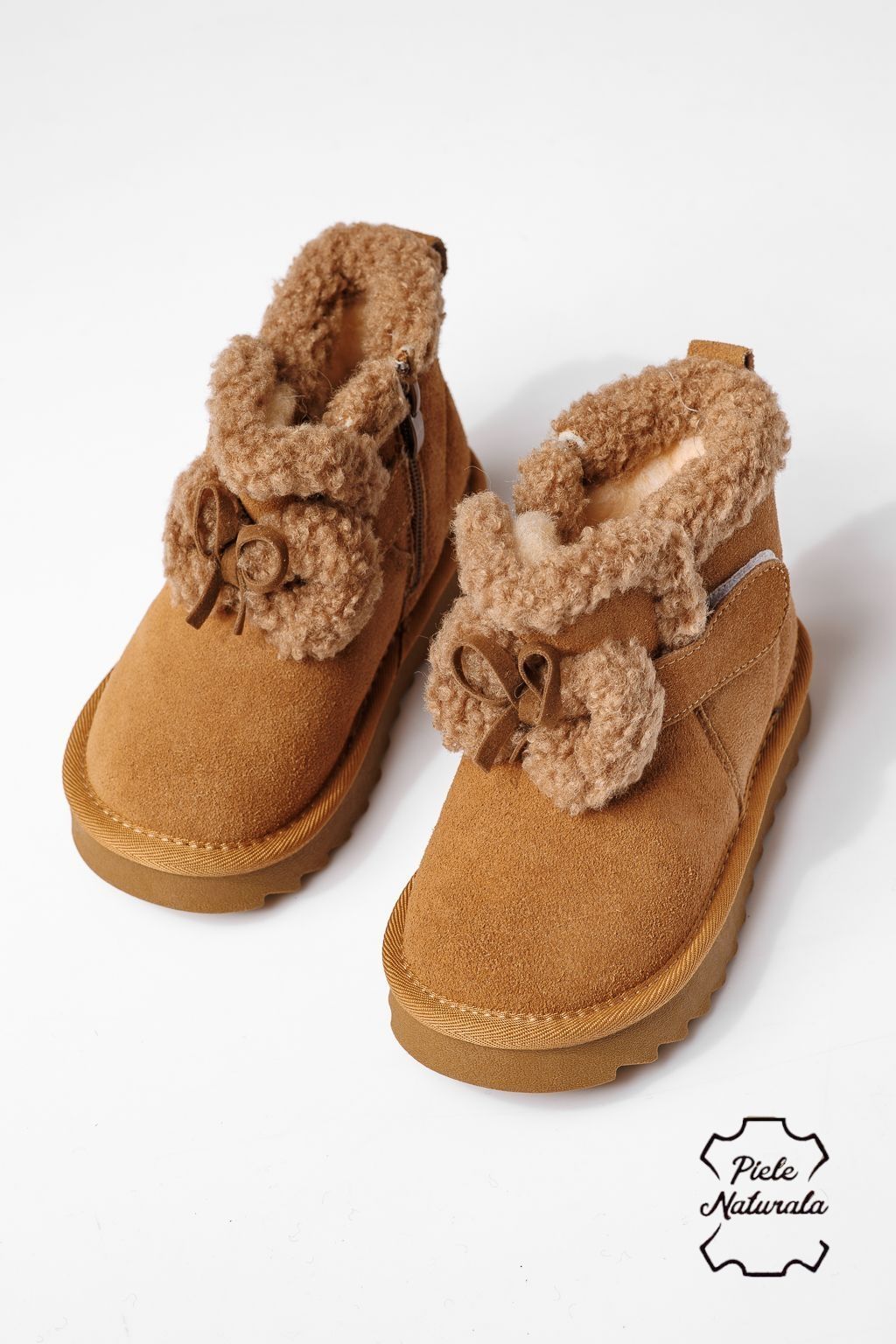 Боти за момичета подплатени с пух кафяви от обърната естествена кожа Pixie #22967