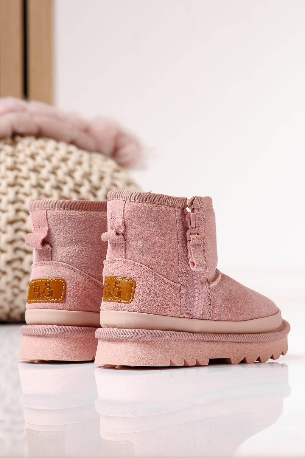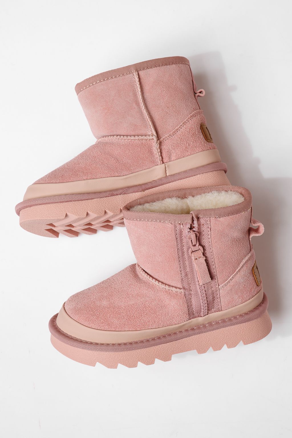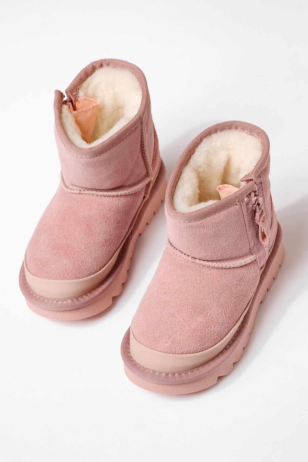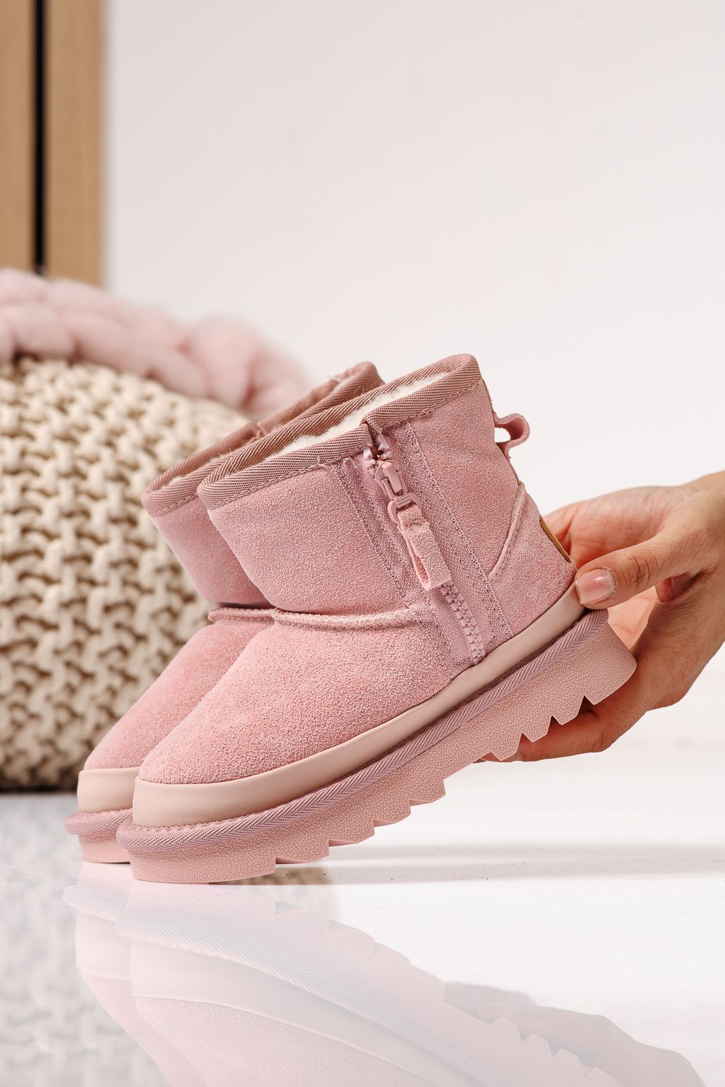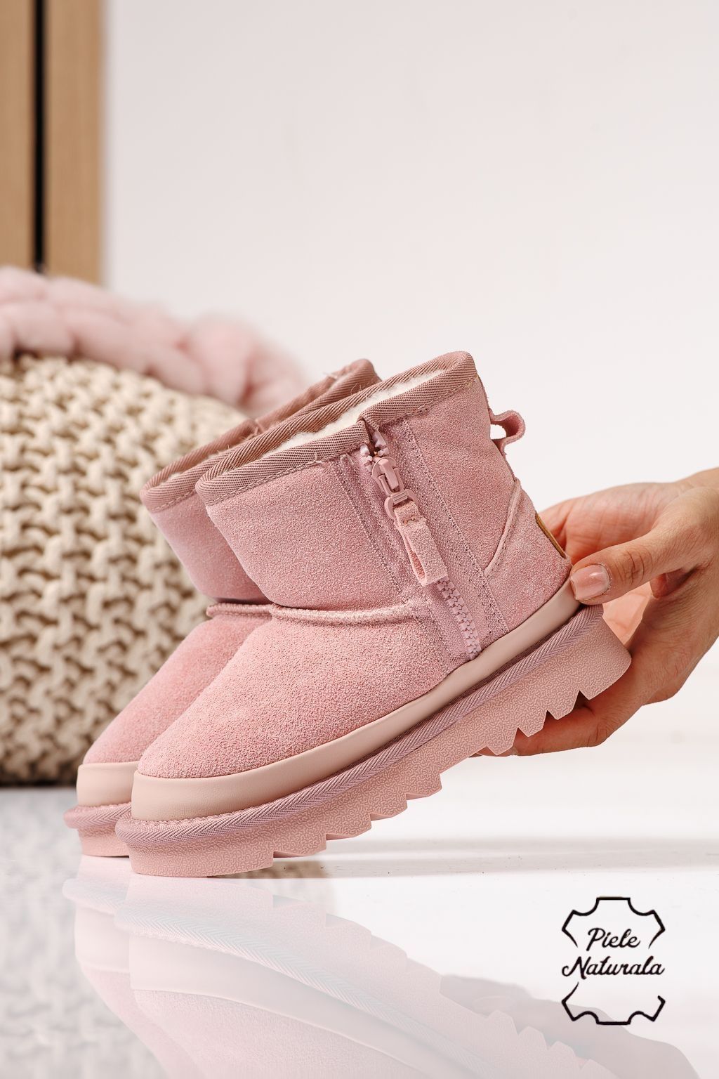 Боти за момичета подплатени с пух розови от обърната естествена кожа Anya #22978