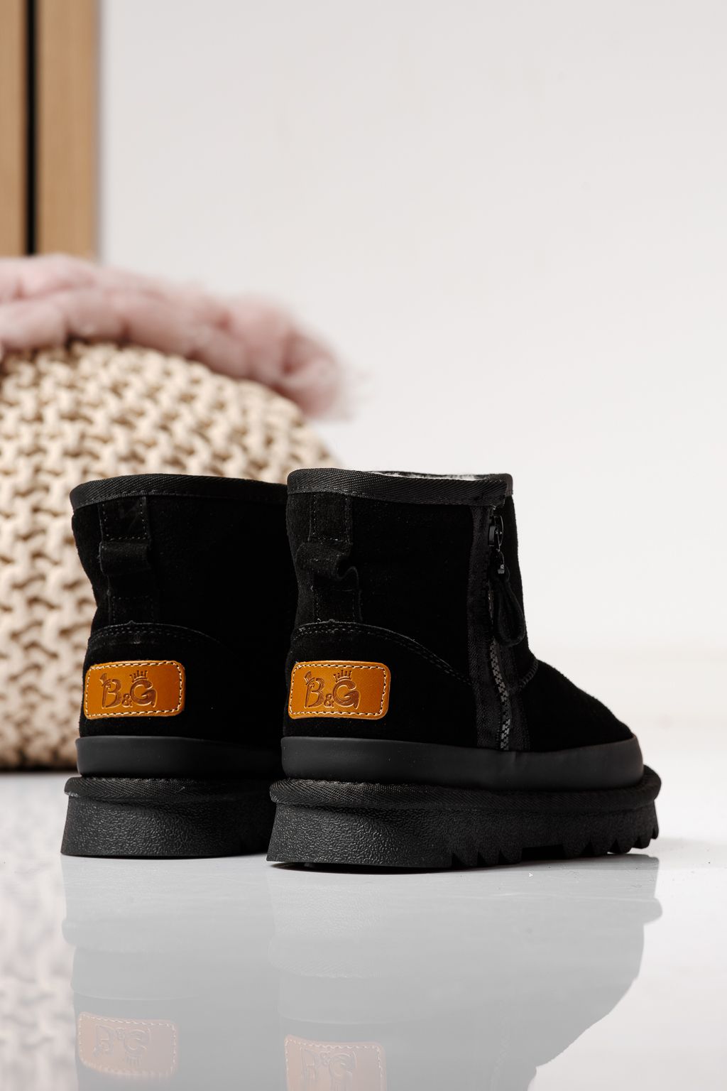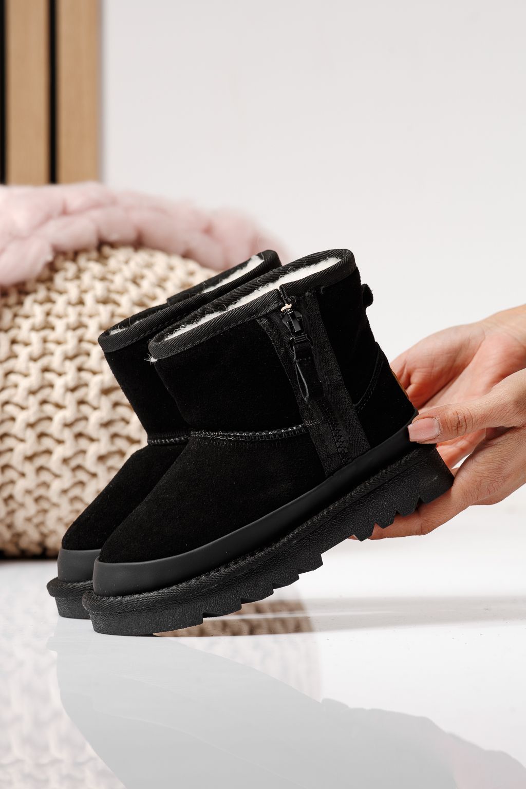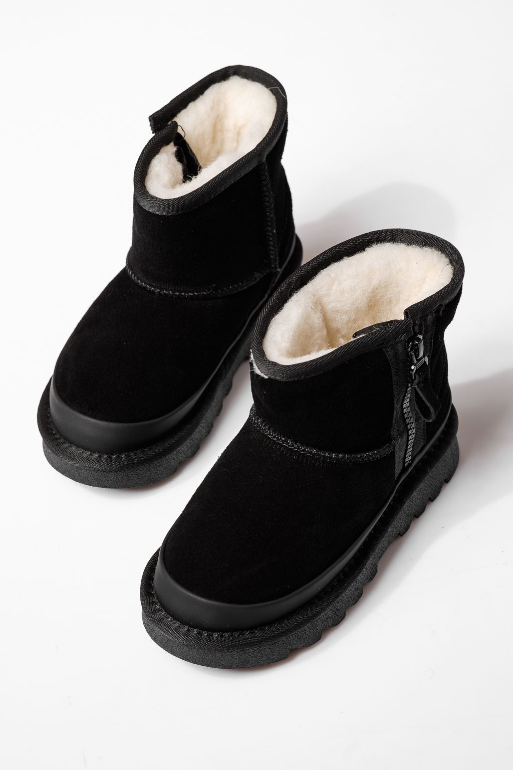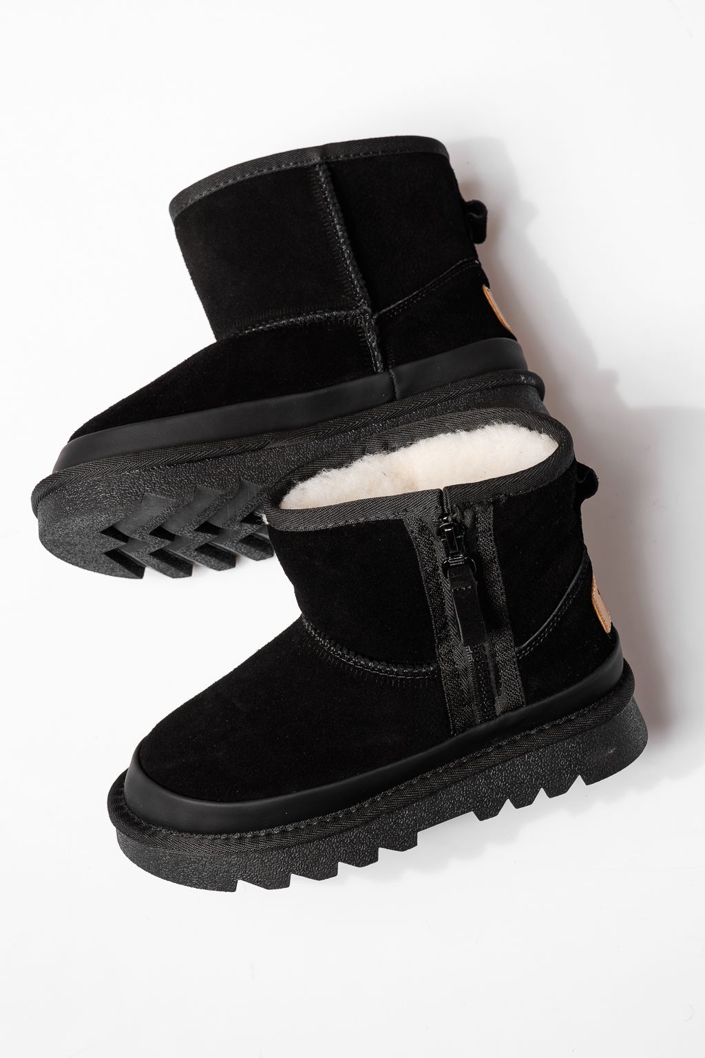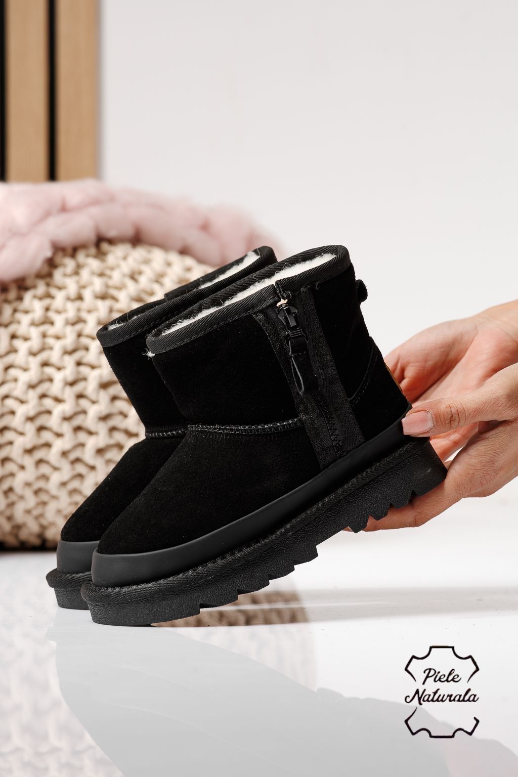 Боти за момичета подплатени с пух черни от обърната естествена кожа Anya #22979