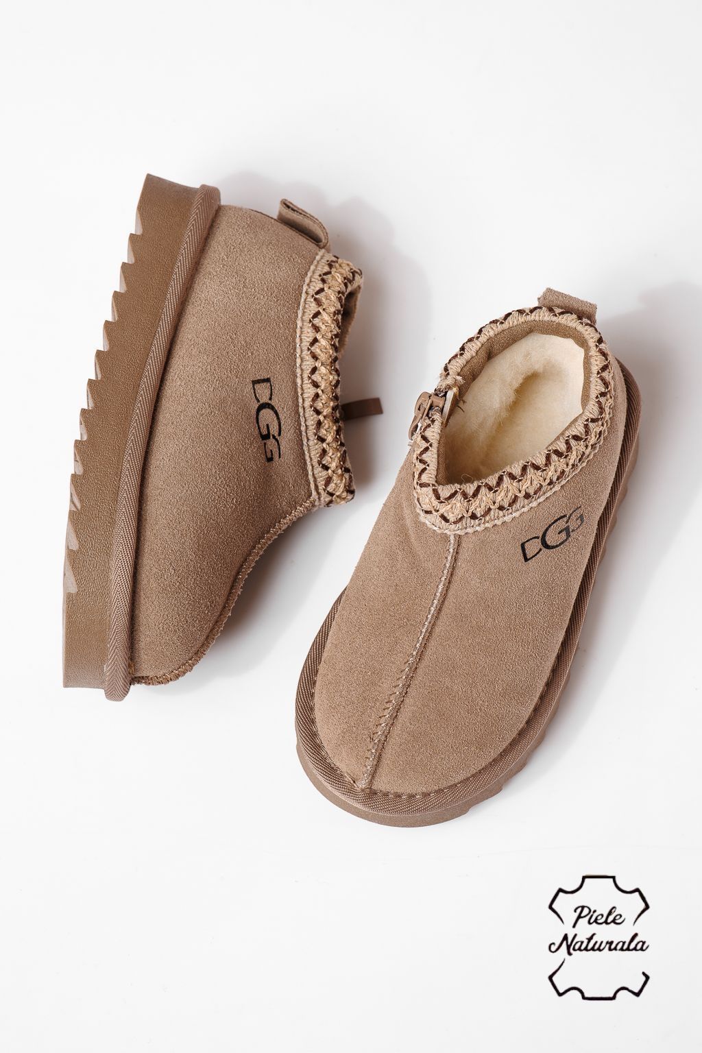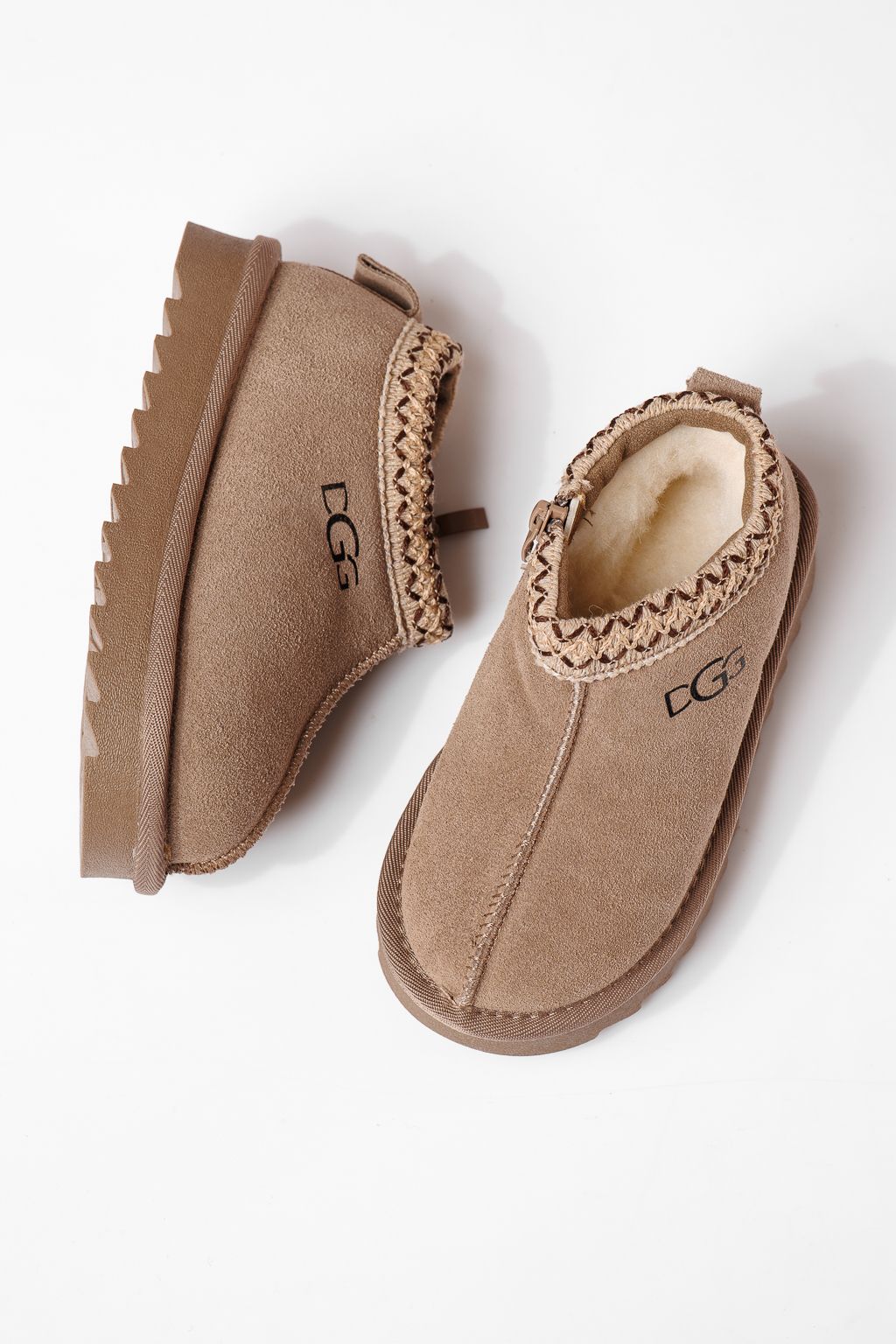 Боти за момичета подплатени с пух розови от обърната естествена кожа Aris #22983