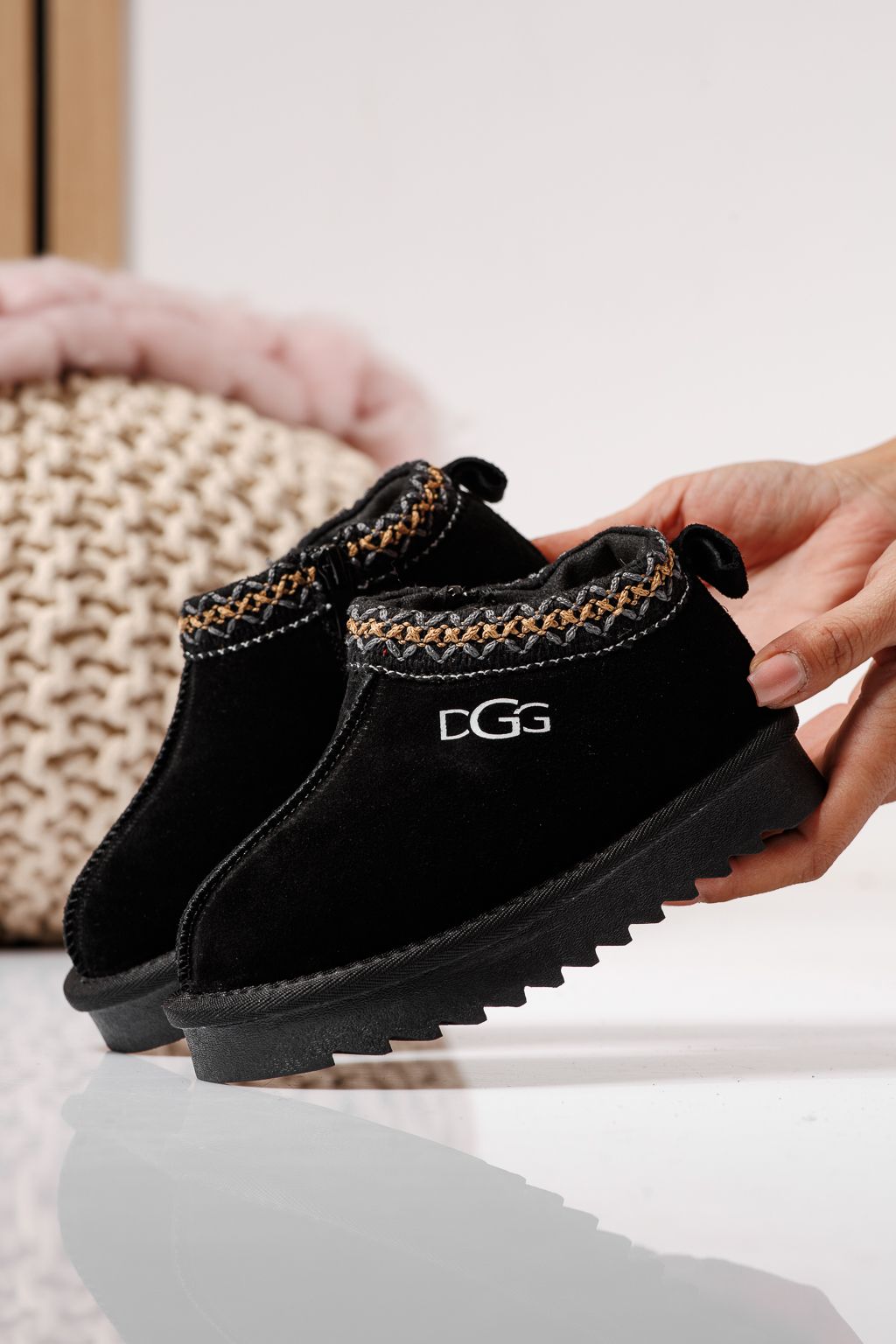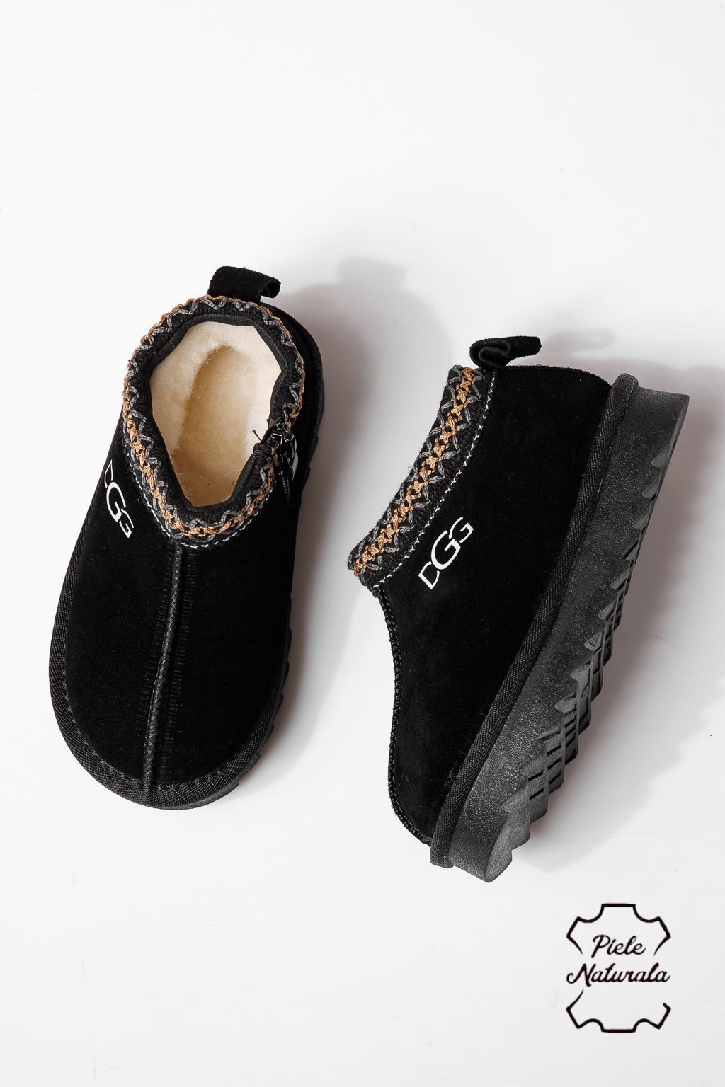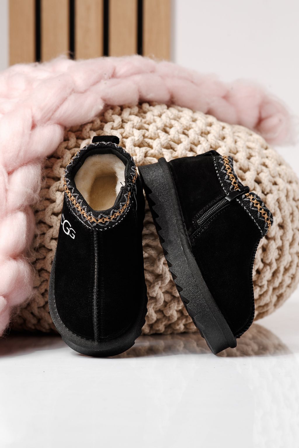 Боти за момичета подплатени с пух черни от обърната естествена кожа Aris #22984