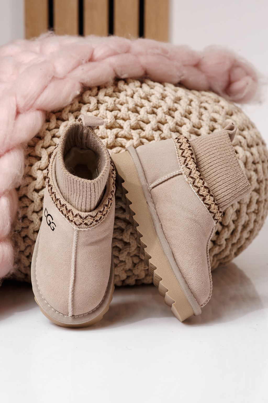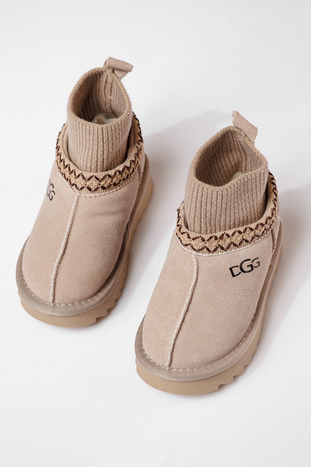 Боти за момичета подплатени с пух бежови от обърната естествена кожа Esfir #22986