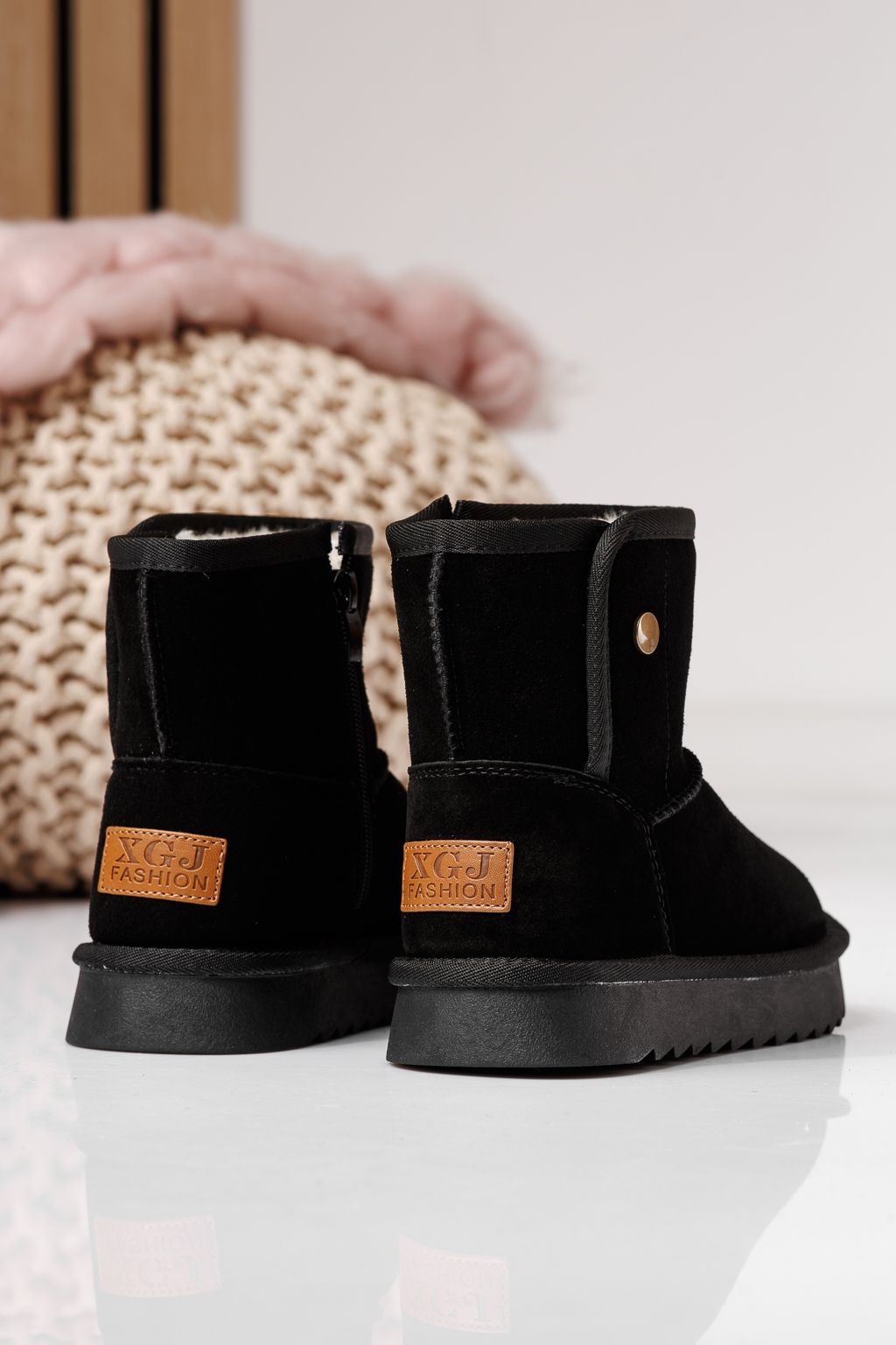 Боти за момичета подплатени с пух черни от обърната естествена кожа Alis #22996