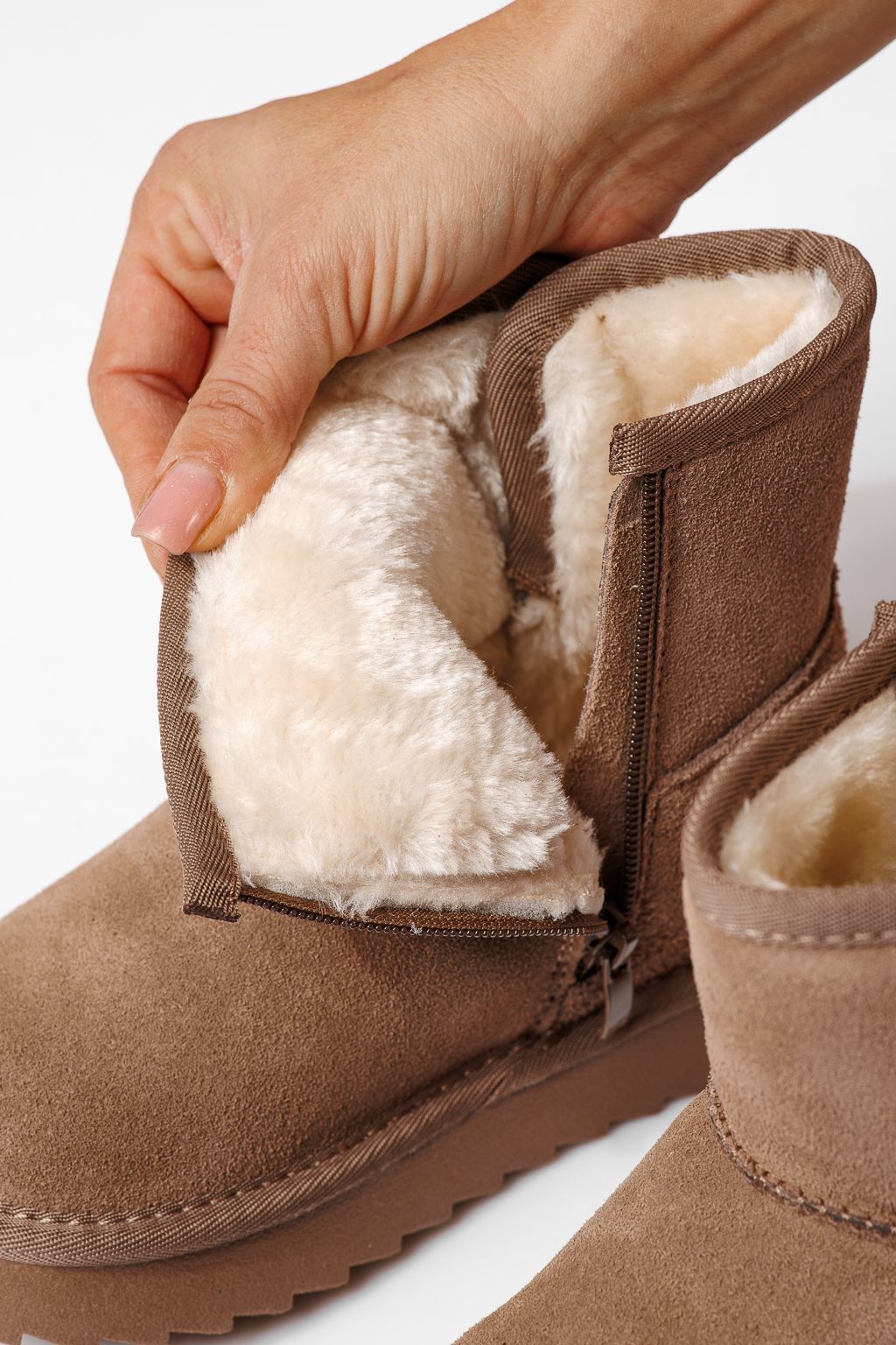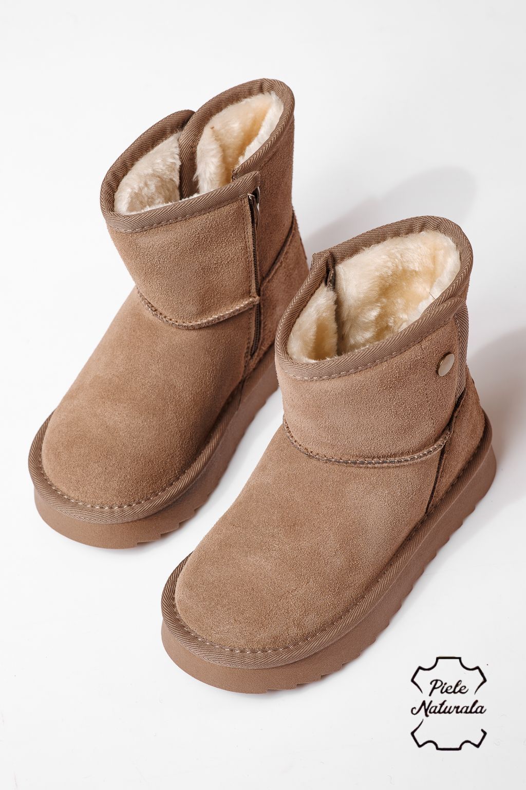 Боти за момичета подплатени с пух червени от обърната естествена кожа Alis #22997