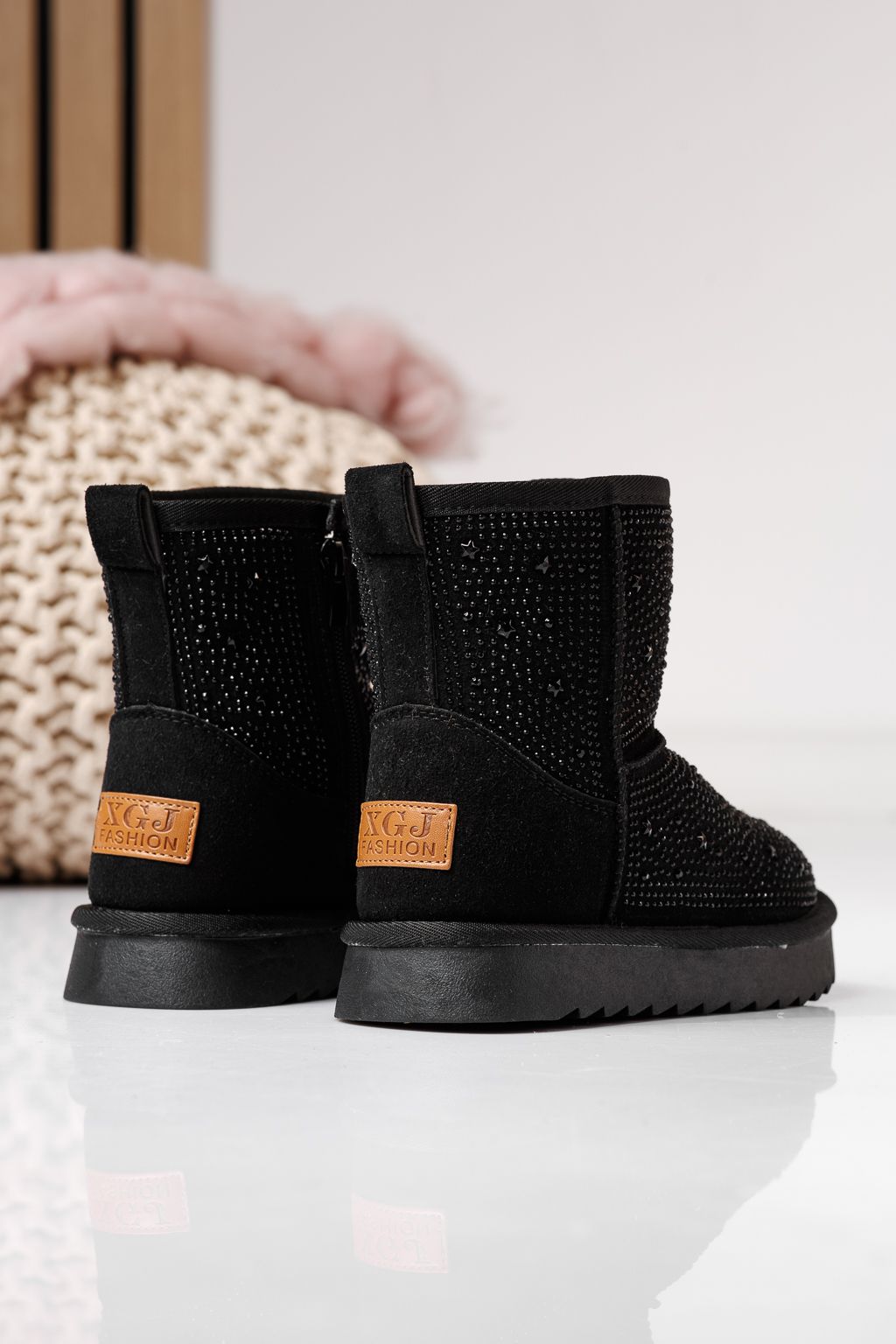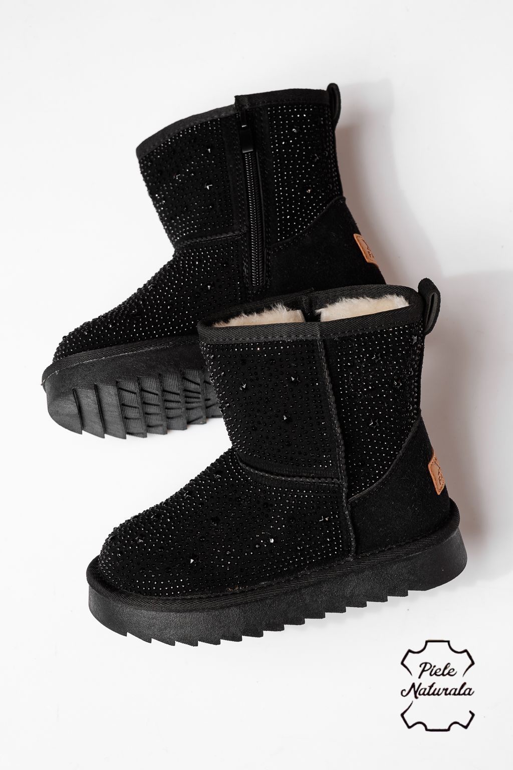 Боти за момичета подплатени с пух черни от обърната естествена кожа Marisa #23001