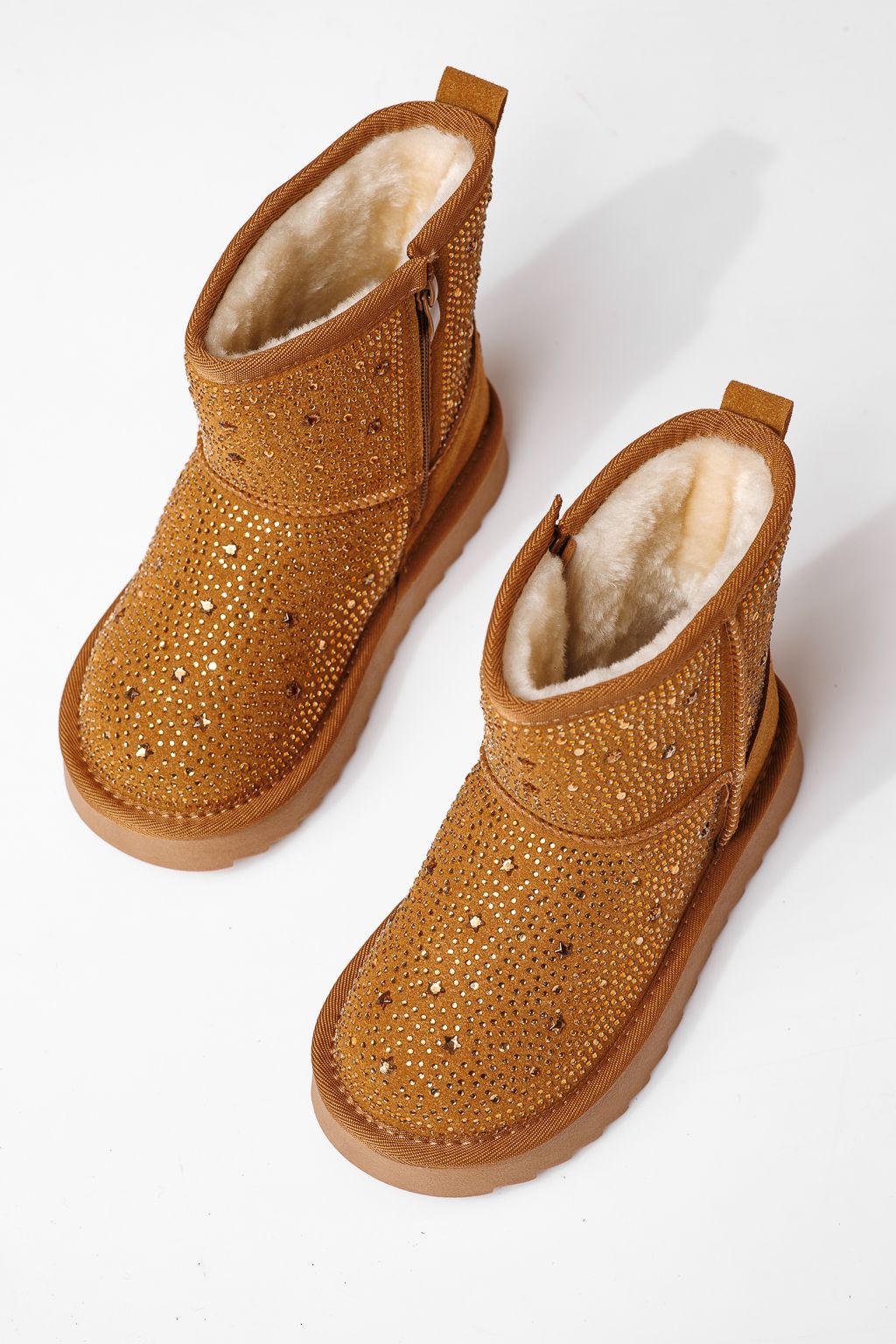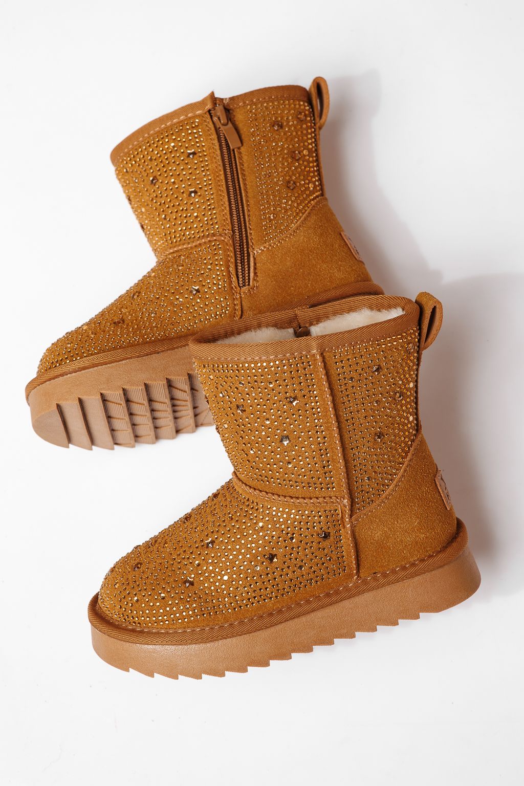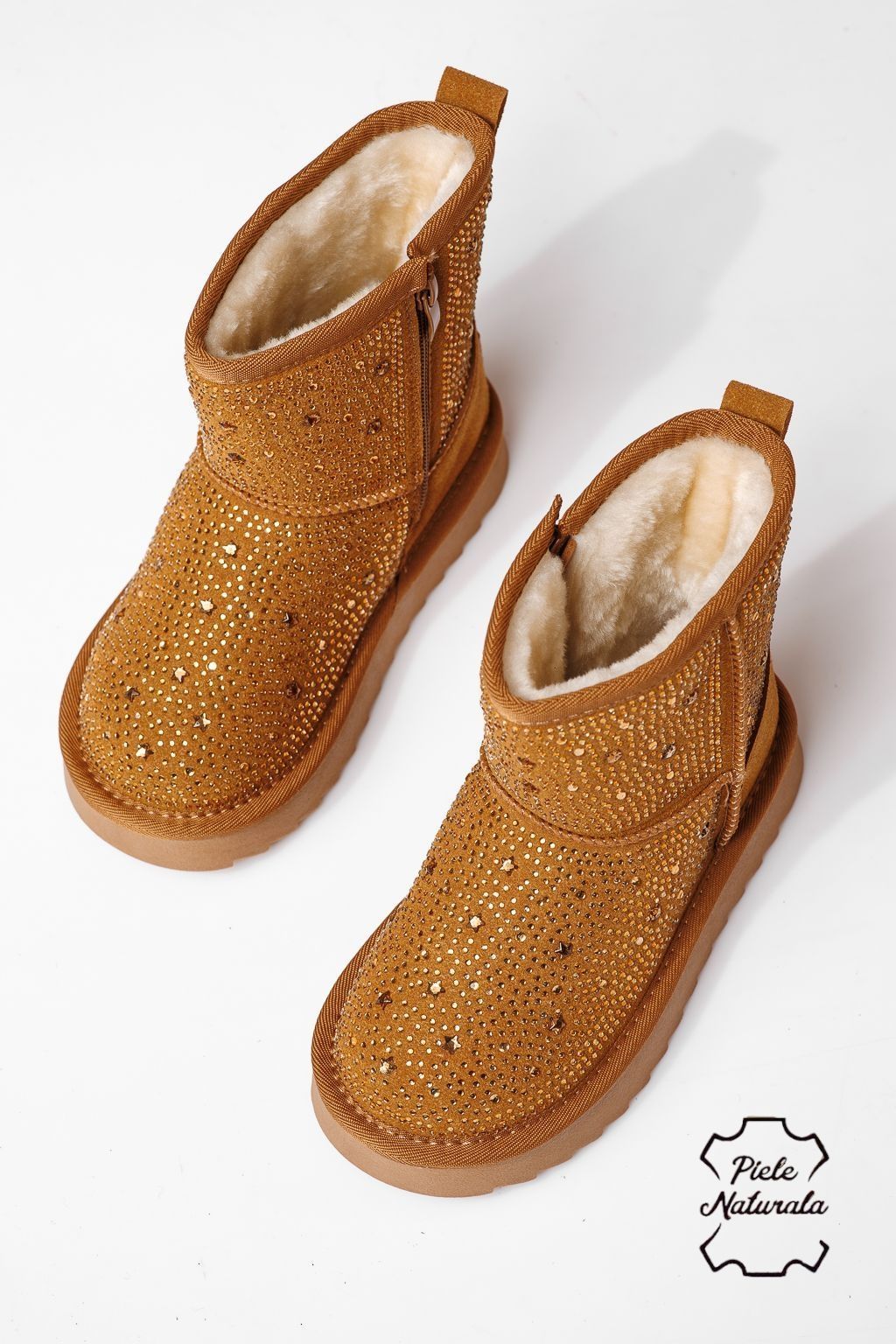 Боти за момичета подплатени с пух кафяви от обърната естествена кожа Marisa #23003