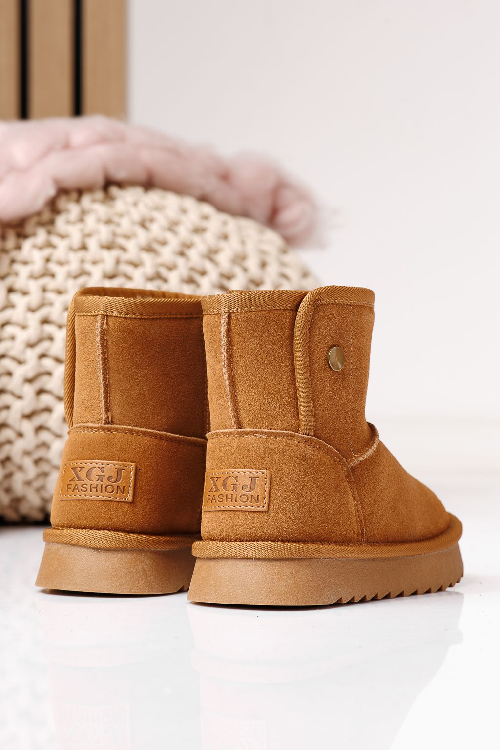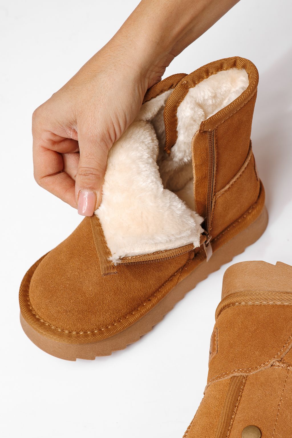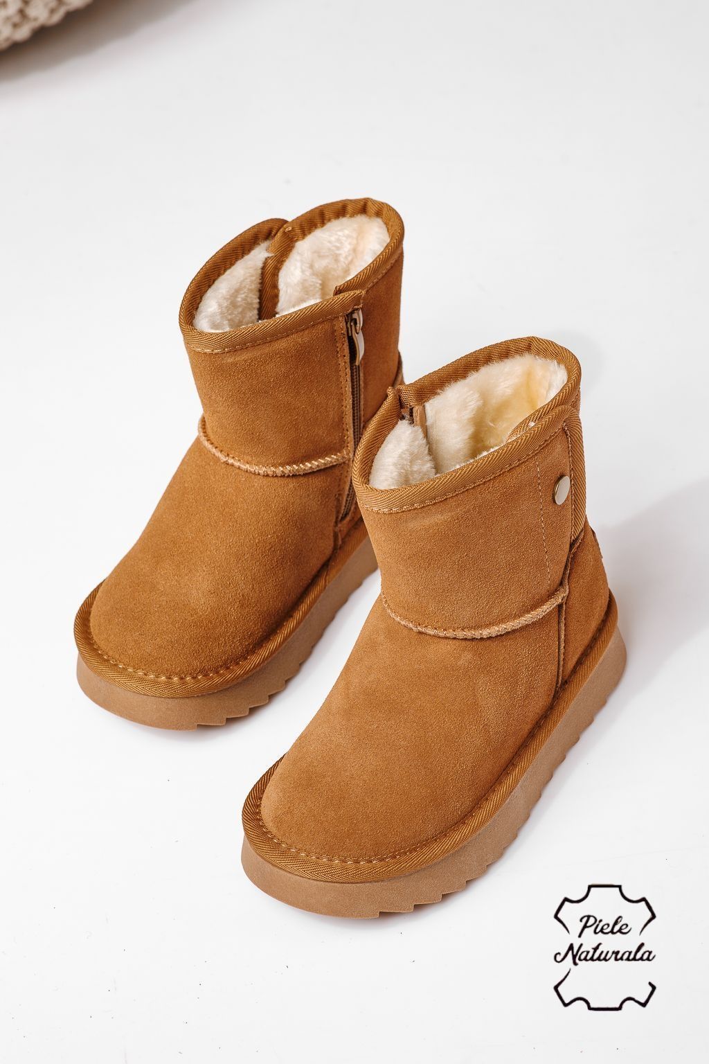 Боти за момичета подплатени с пух кафяви от обърната естествена кожа Alis #23007
