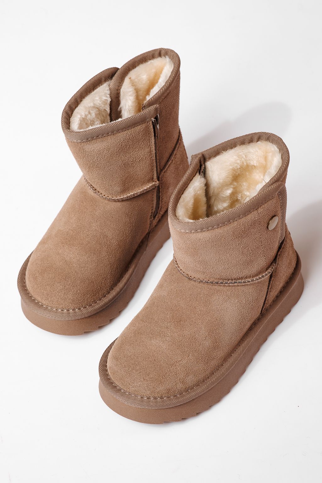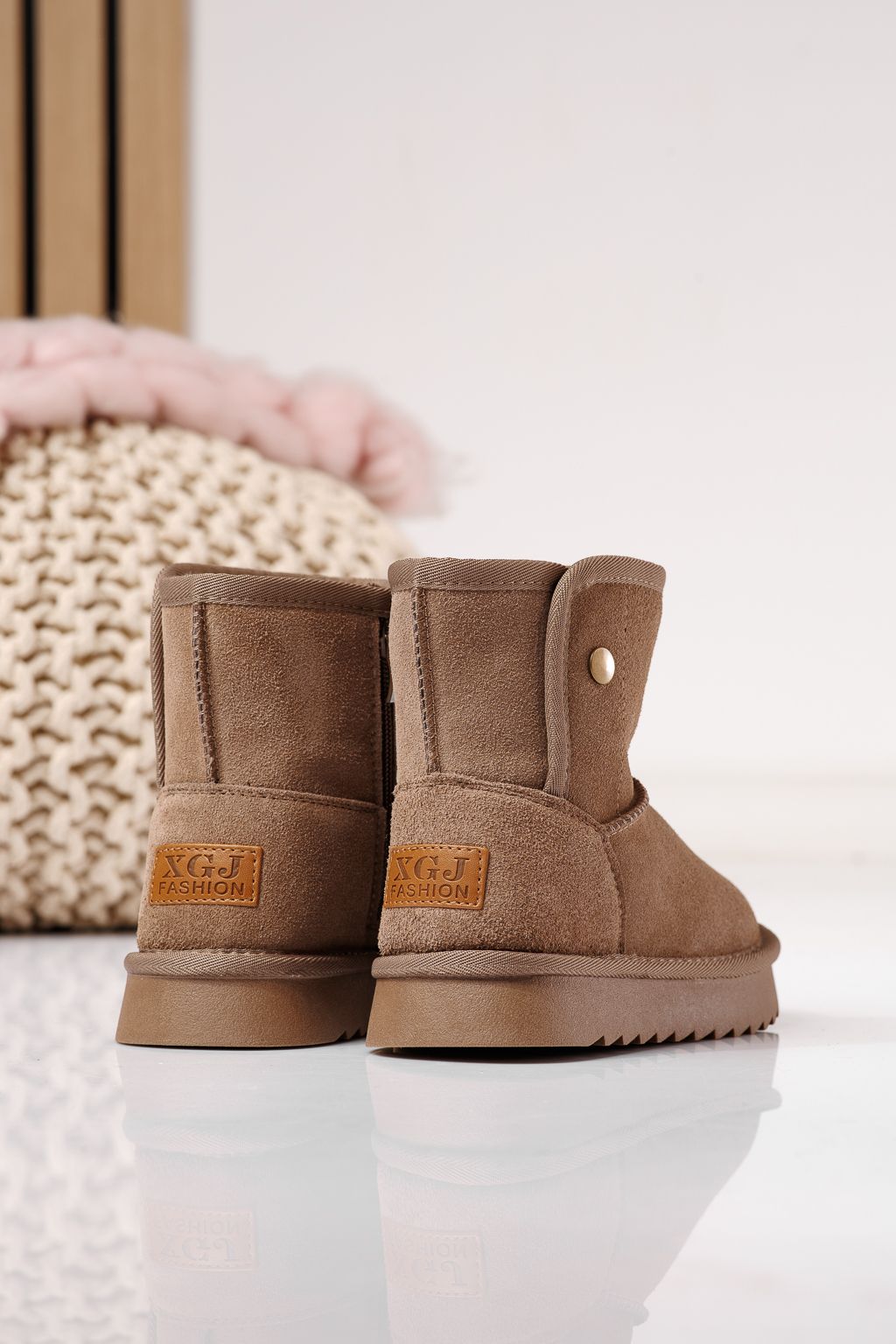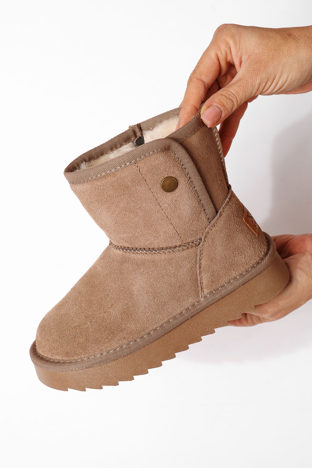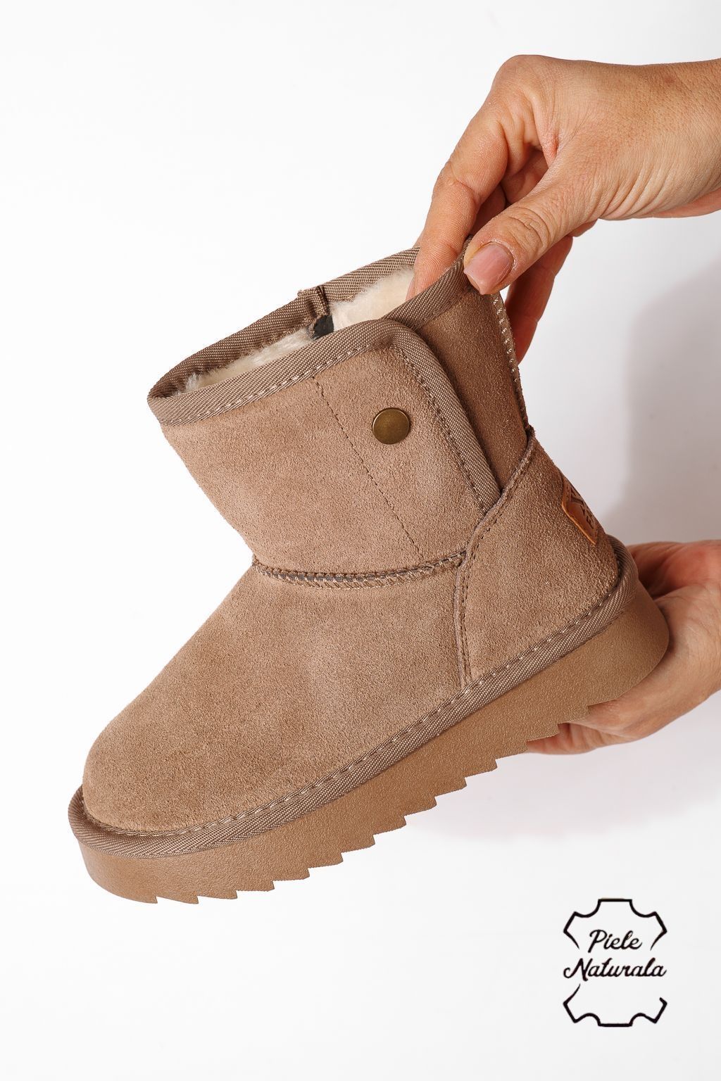 Боти за момичета подплатени с пух червени от обърната естествена кожа Alis #23009