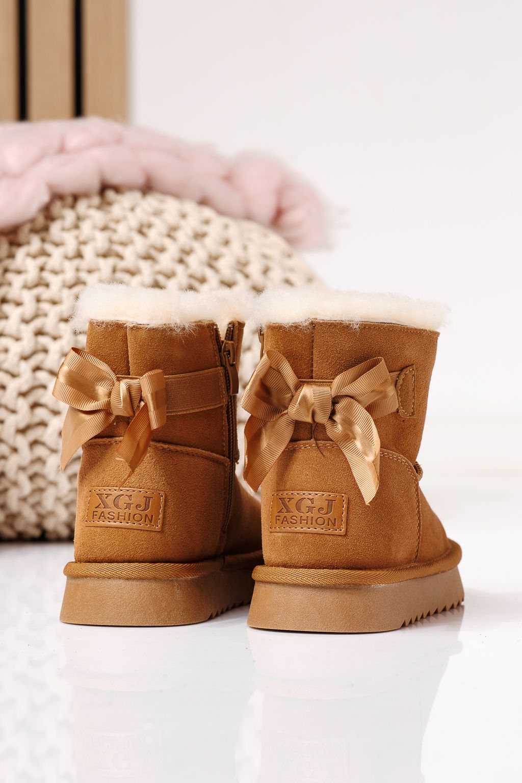 Начало Всички продукти Детски обувки Детски Боти Боти за момичета подплатени с пух кафяви от обърната естествена кожа Alina #23011