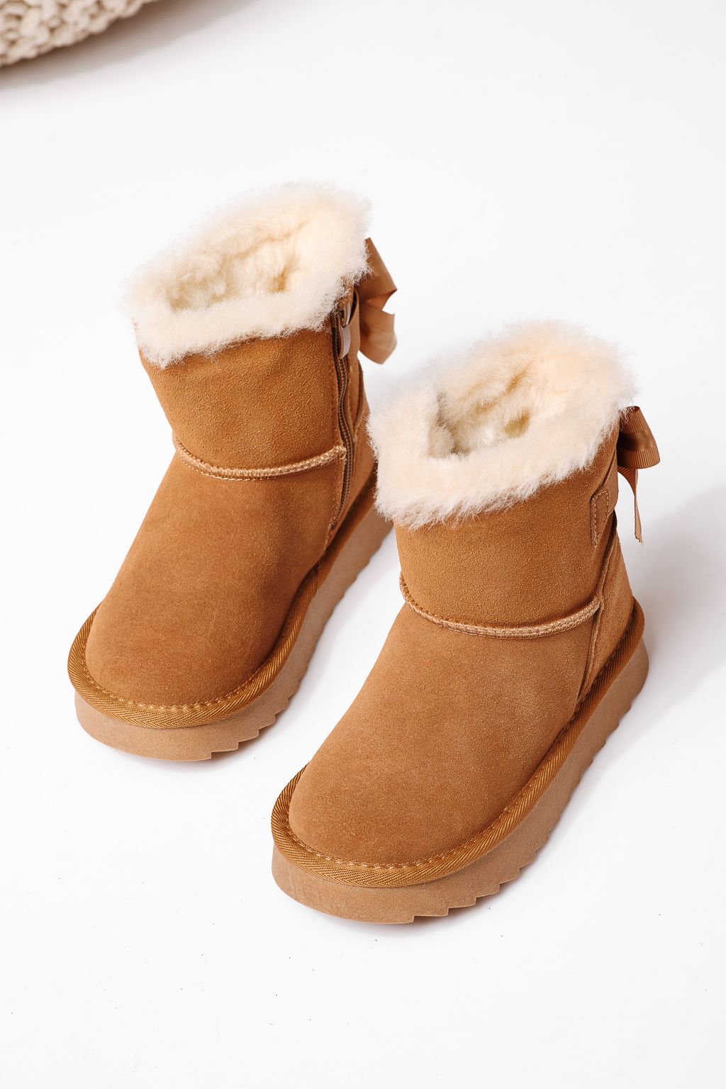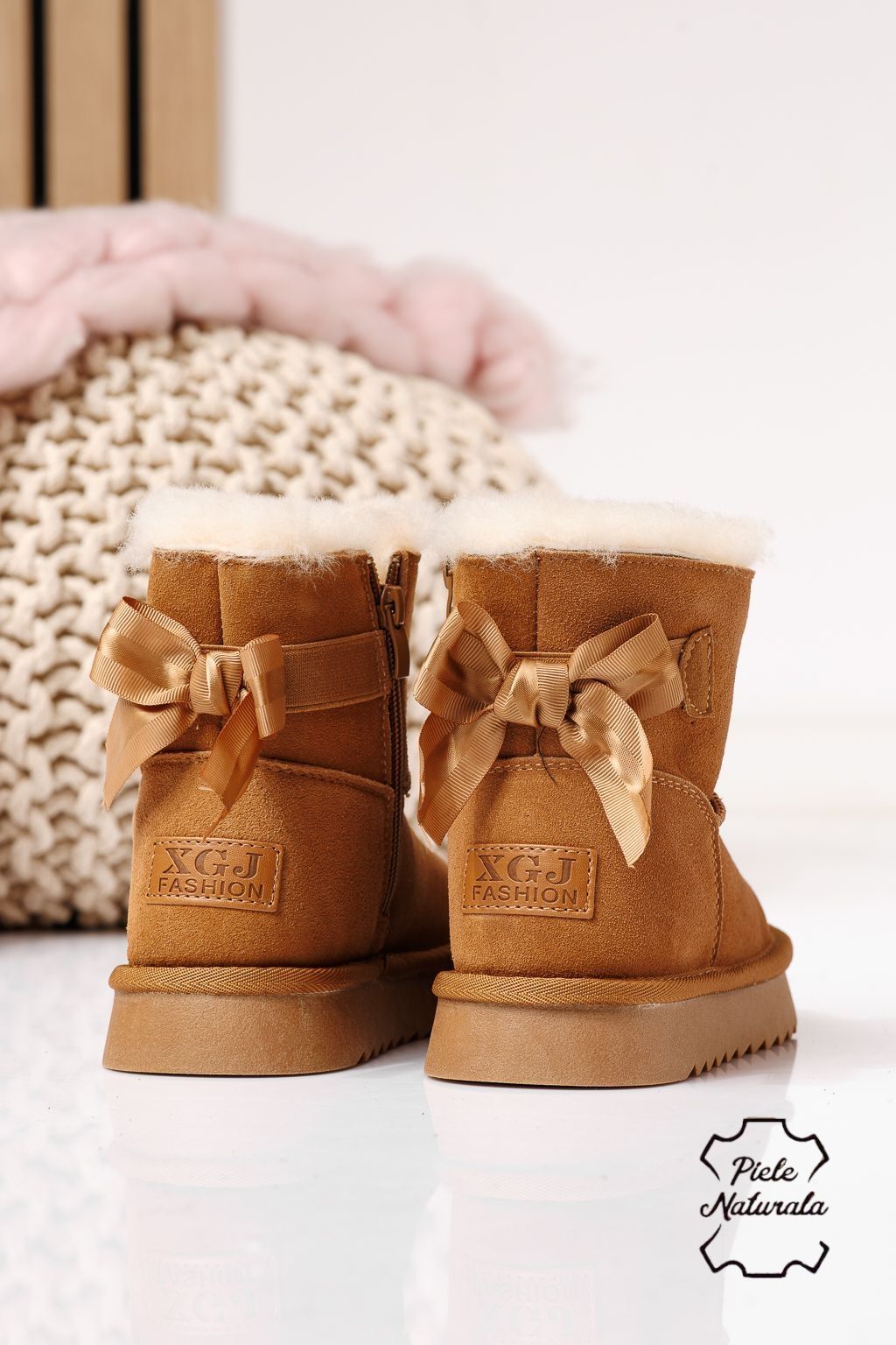 Боти за момичета подплатени с пух кафяви от обърната естествена кожа Alina #23011