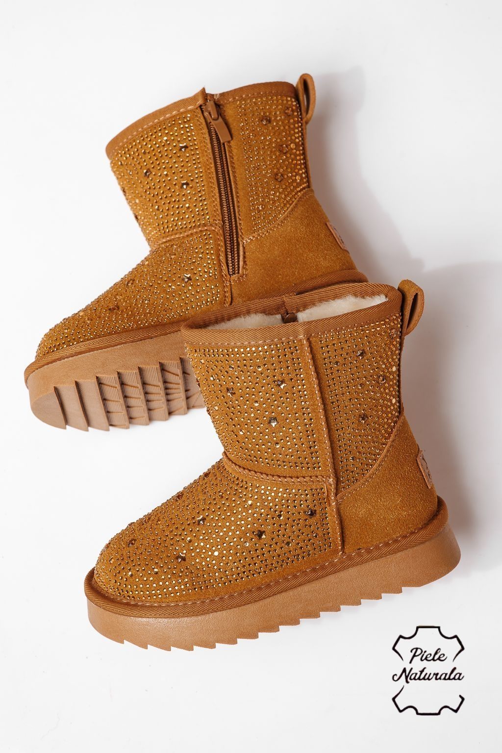 Боти за момичета подплатени с пух кафяви от обърната естествена кожа Marisa #23017