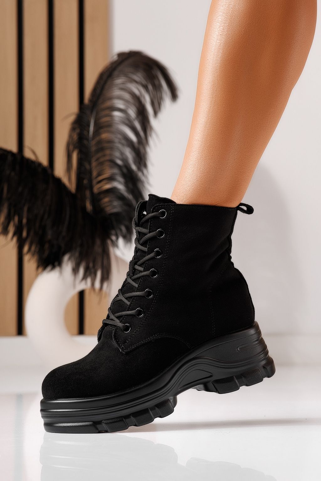 Дамски боти ватирани черни от обърната еко кожа Olivia #23024