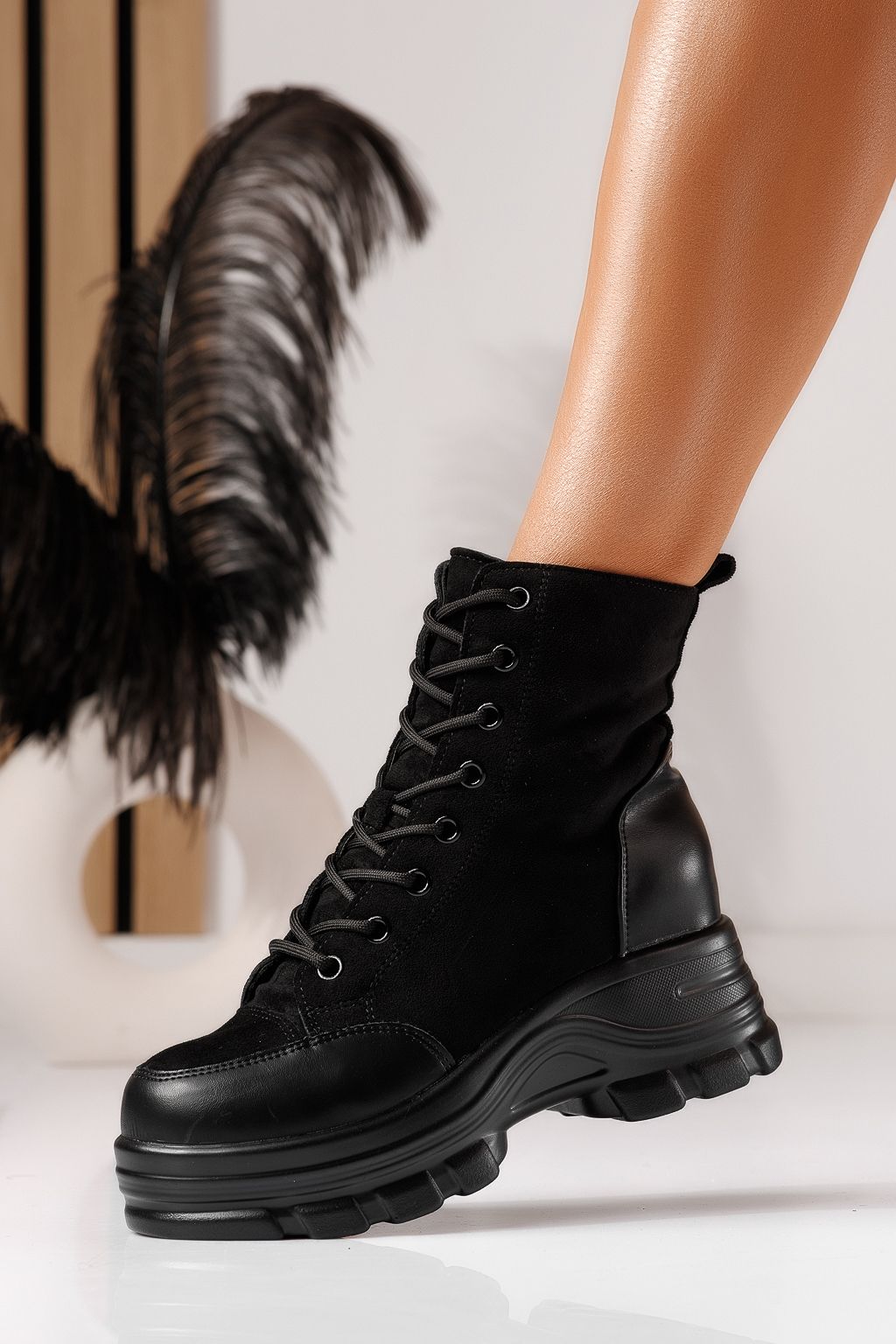 Дамски боти ватирани черни от обърната еко кожа Sarah #23032