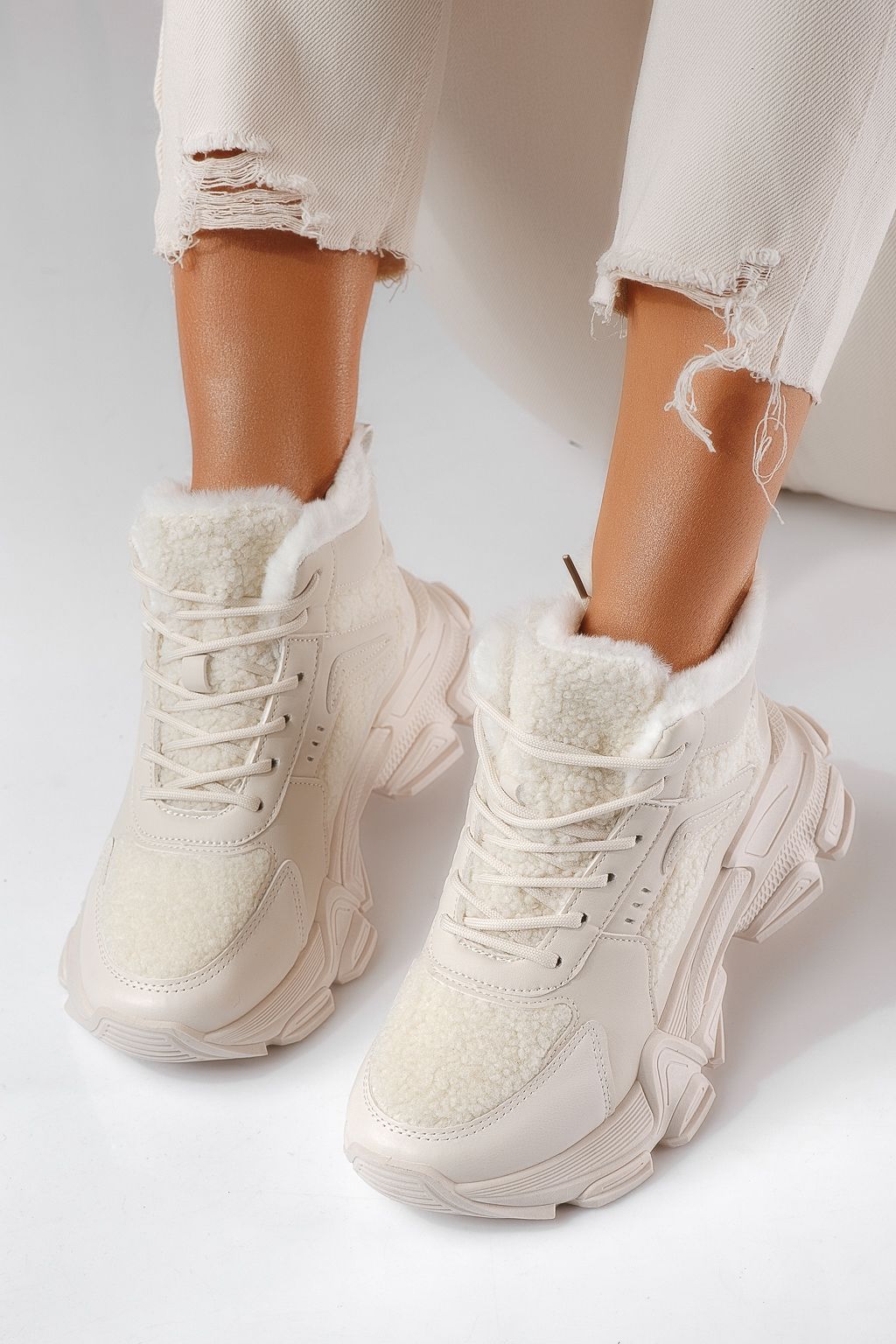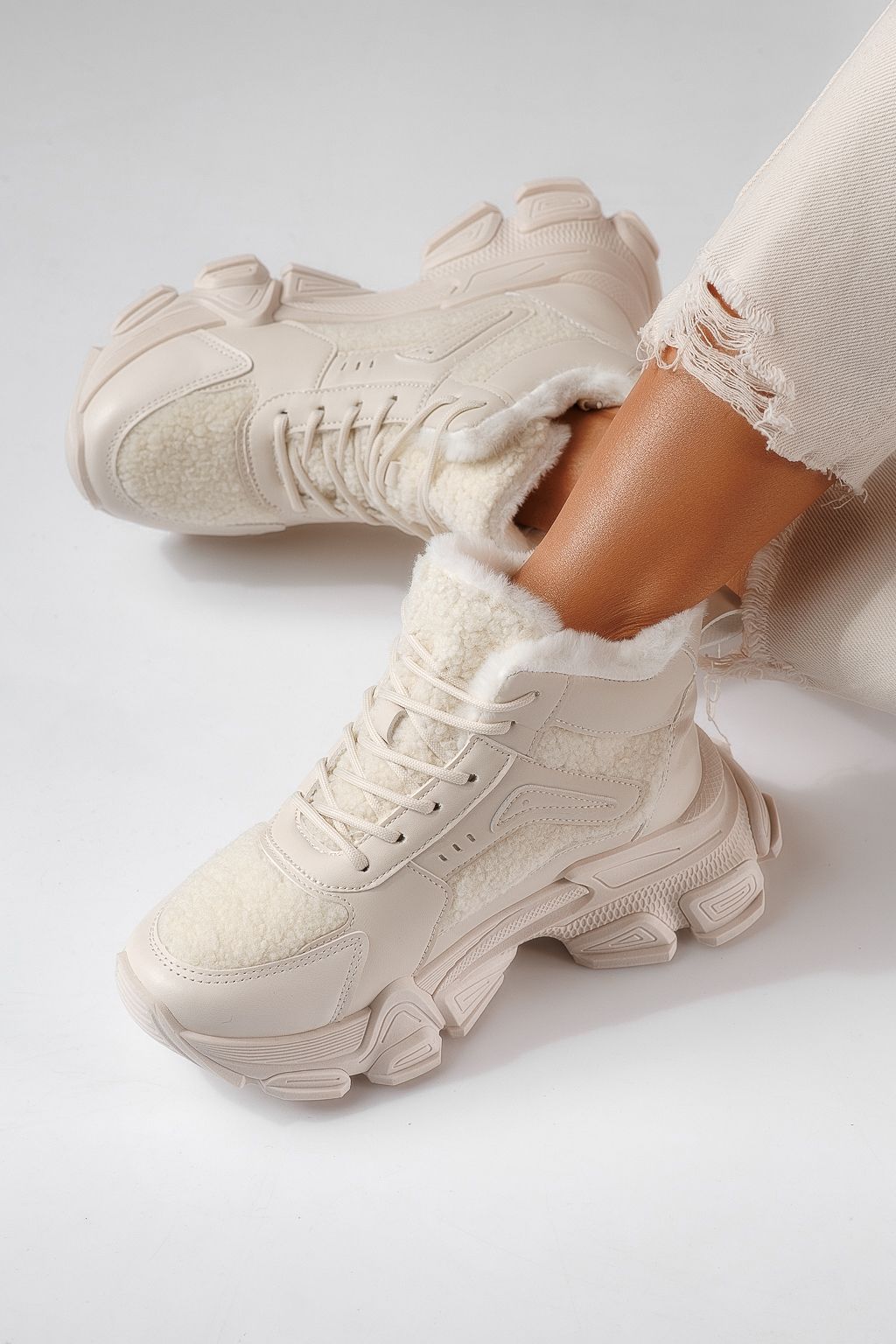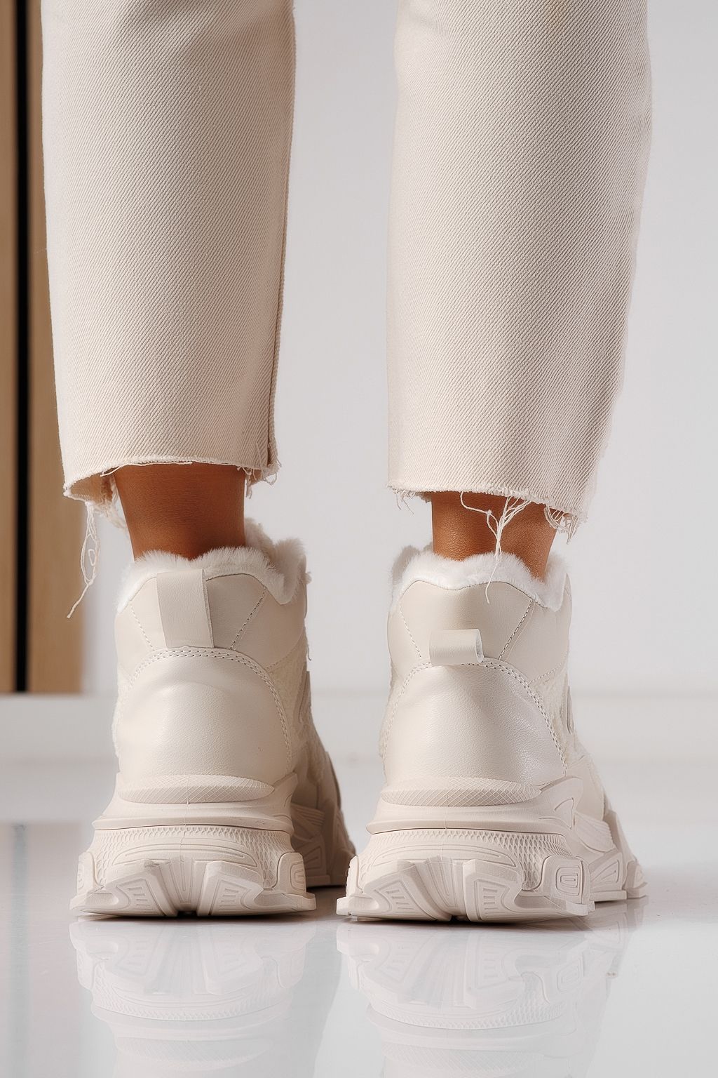 Спортни дамски боти подплатени с пух бежови от еко кожа Sevgi #23035