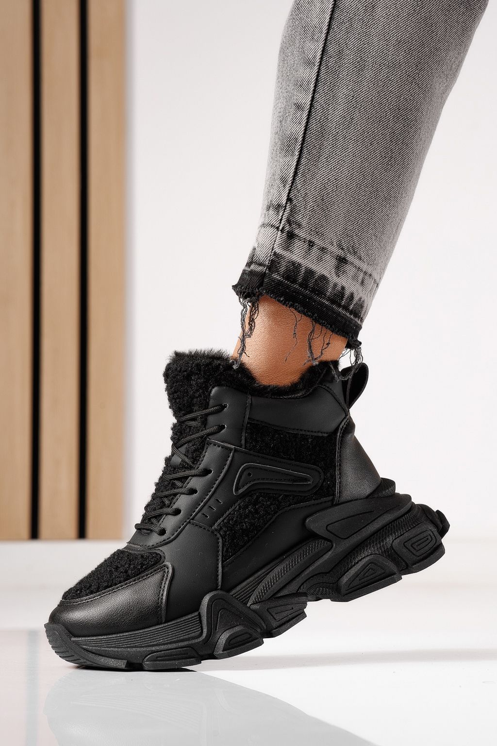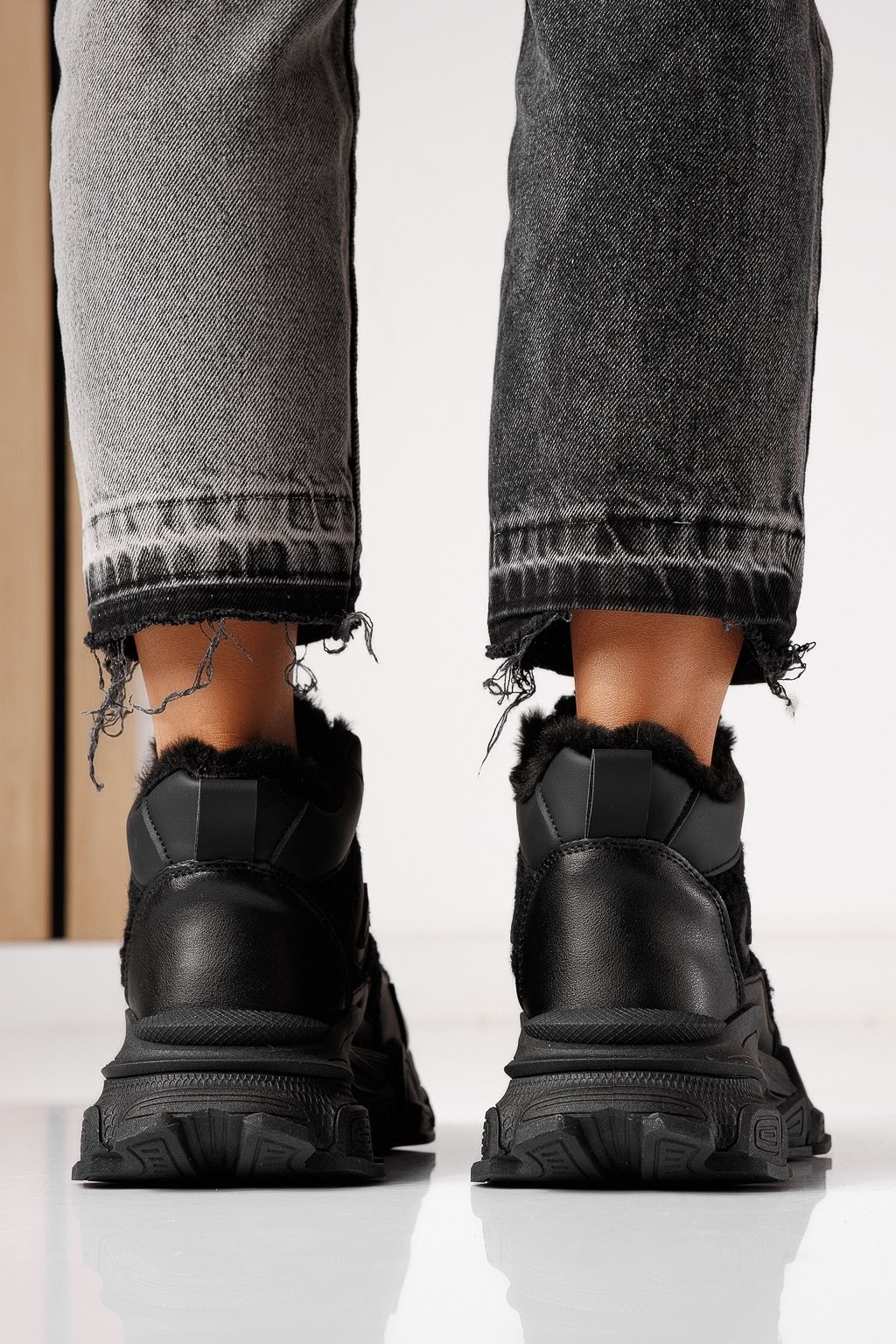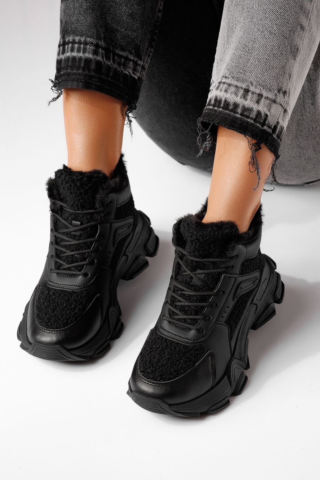 Спортни дамски боти подплатени с пух черни от еко кожа Sevgi #23036