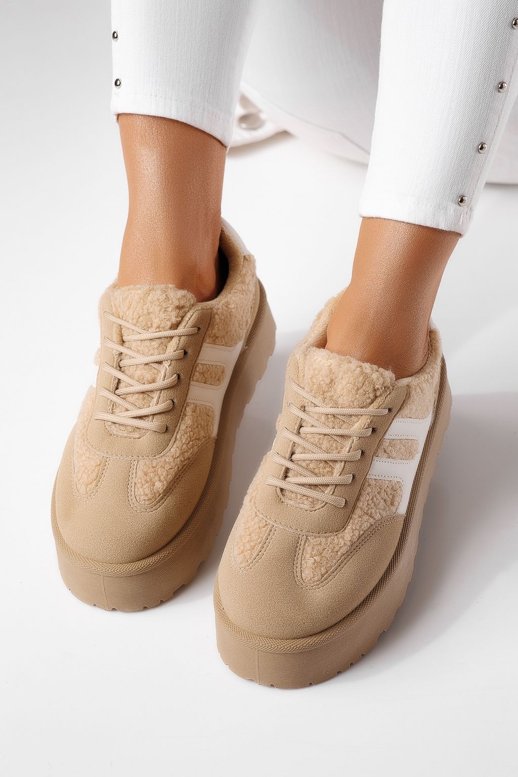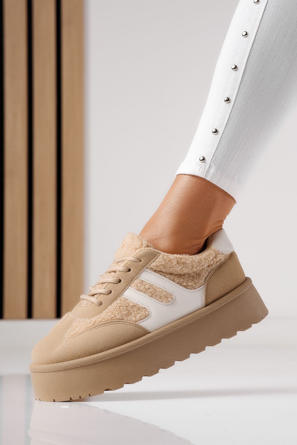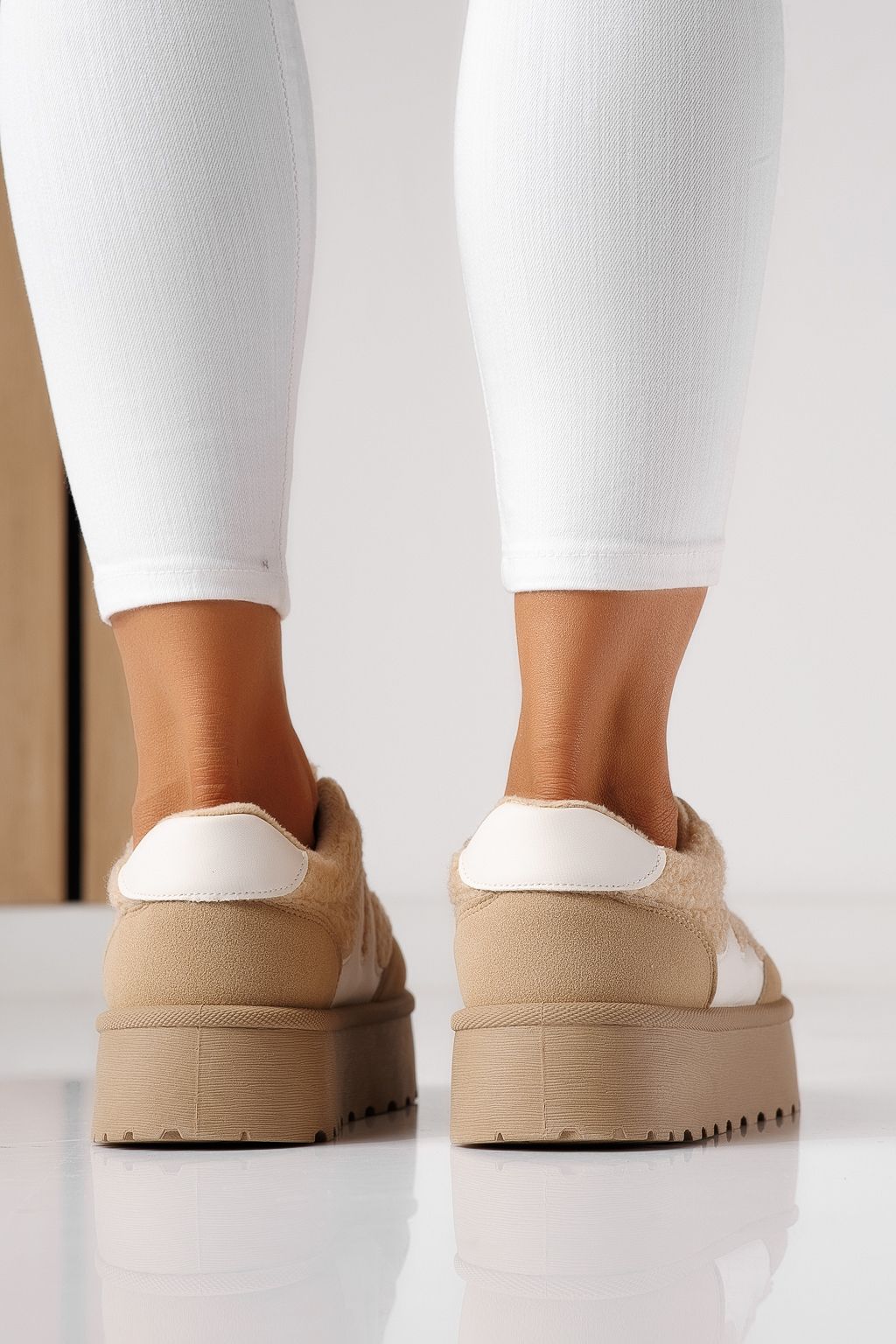 Дамски маратонки ватирани каки от обърната еко кожа Lale #23038