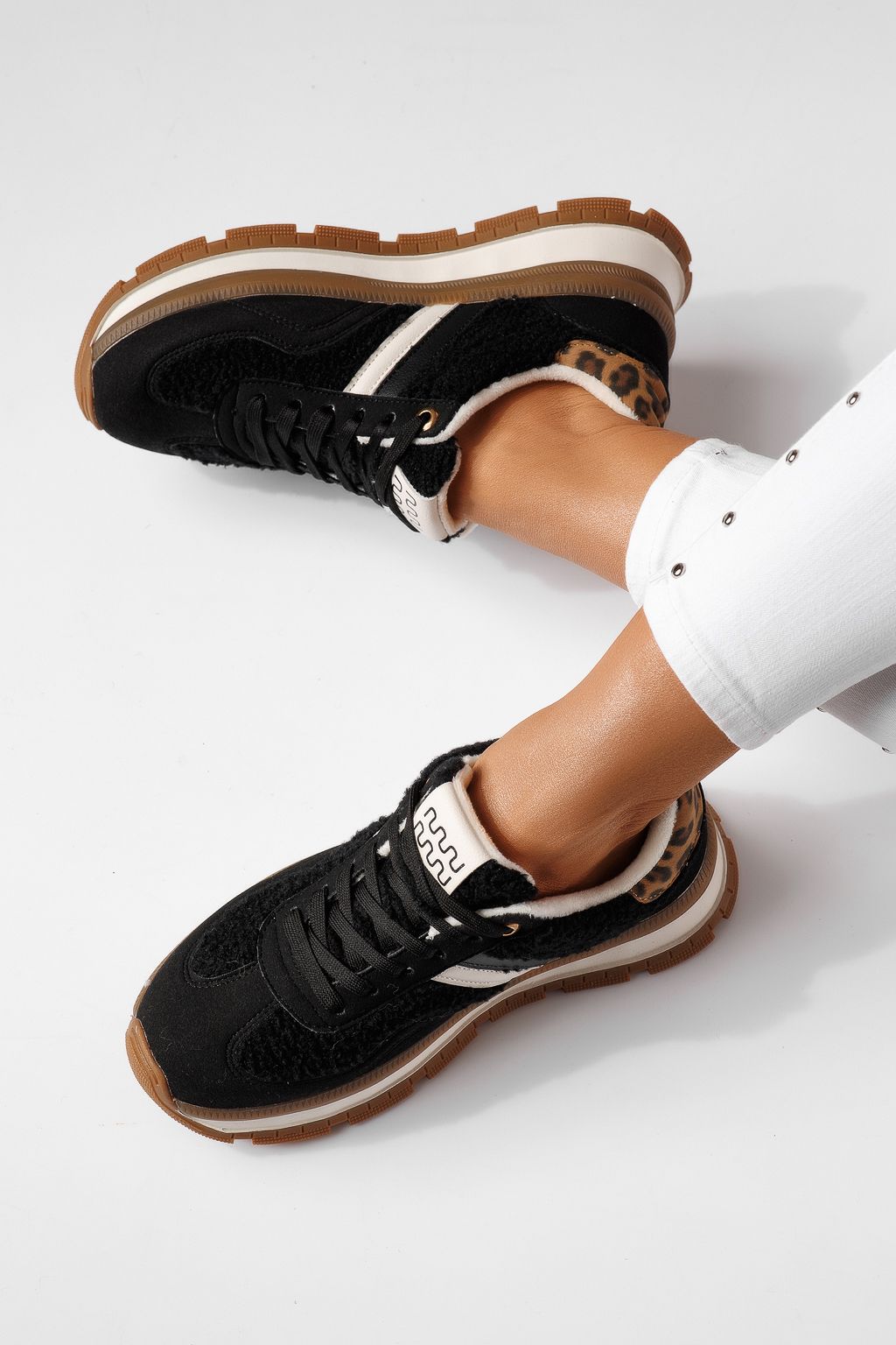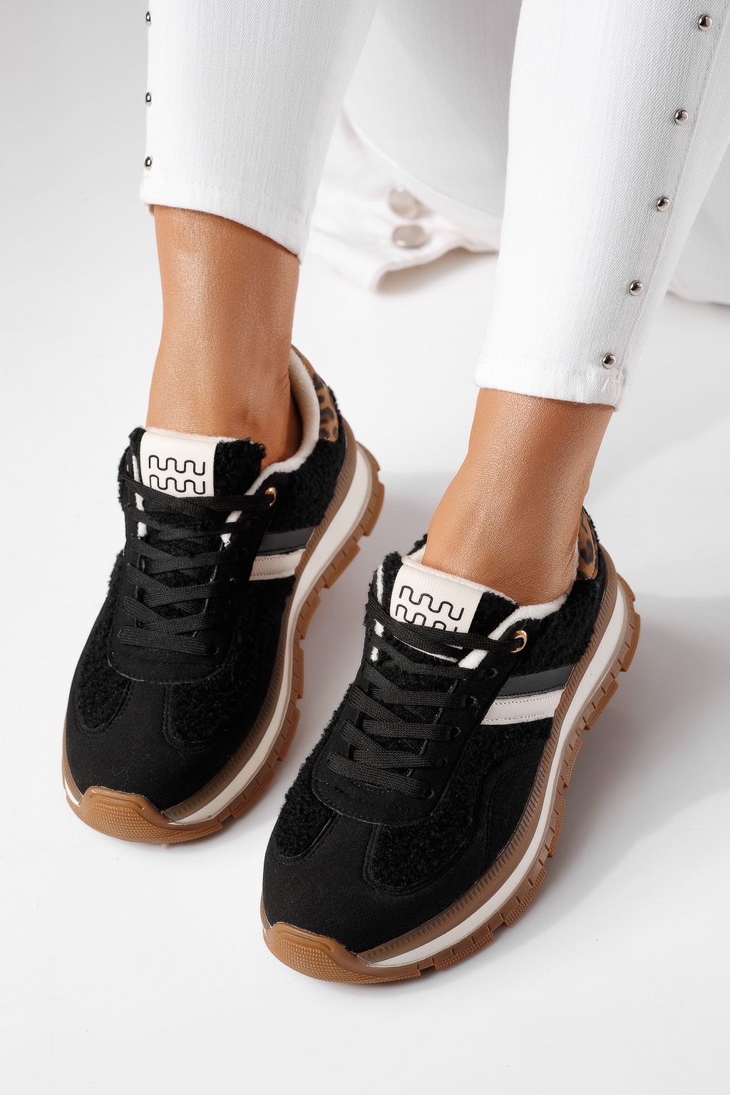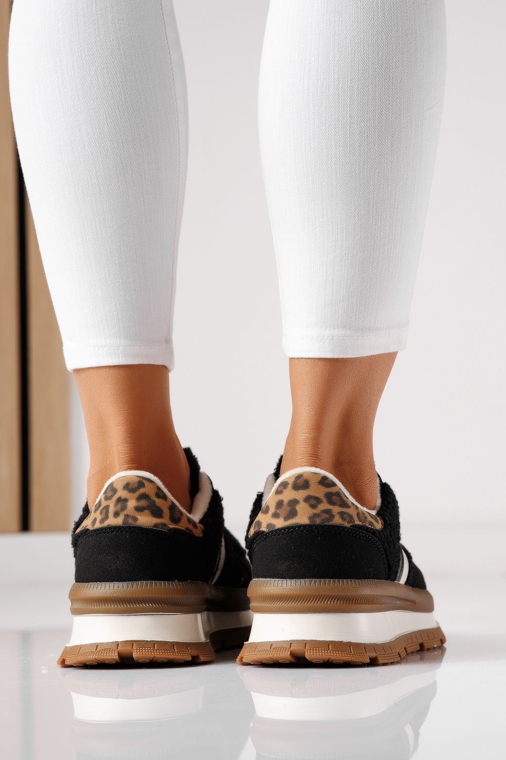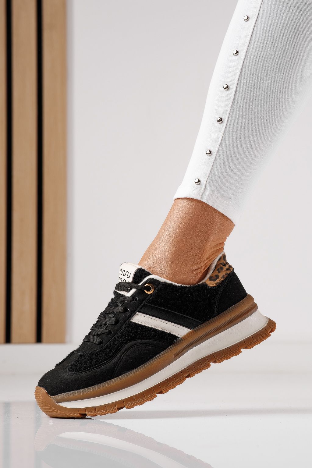 Дамски маратонки ватирани черни от обърната еко кожа Leila #23042