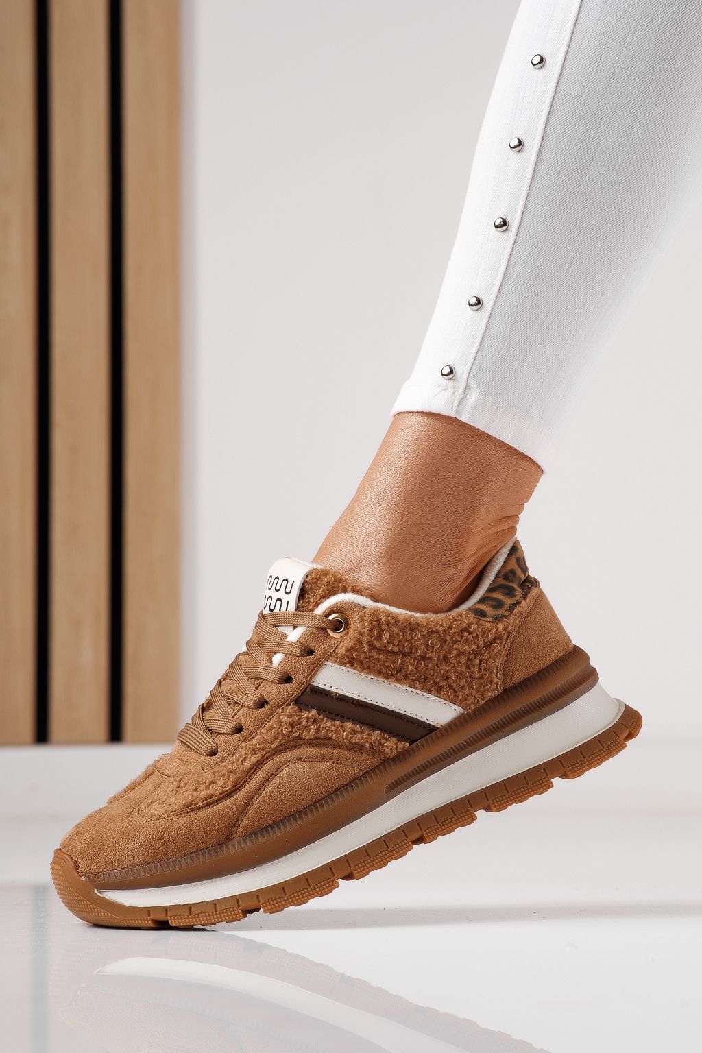 Дамски маратонки ватирани кафяви от обърната еко кожа Leila #23046