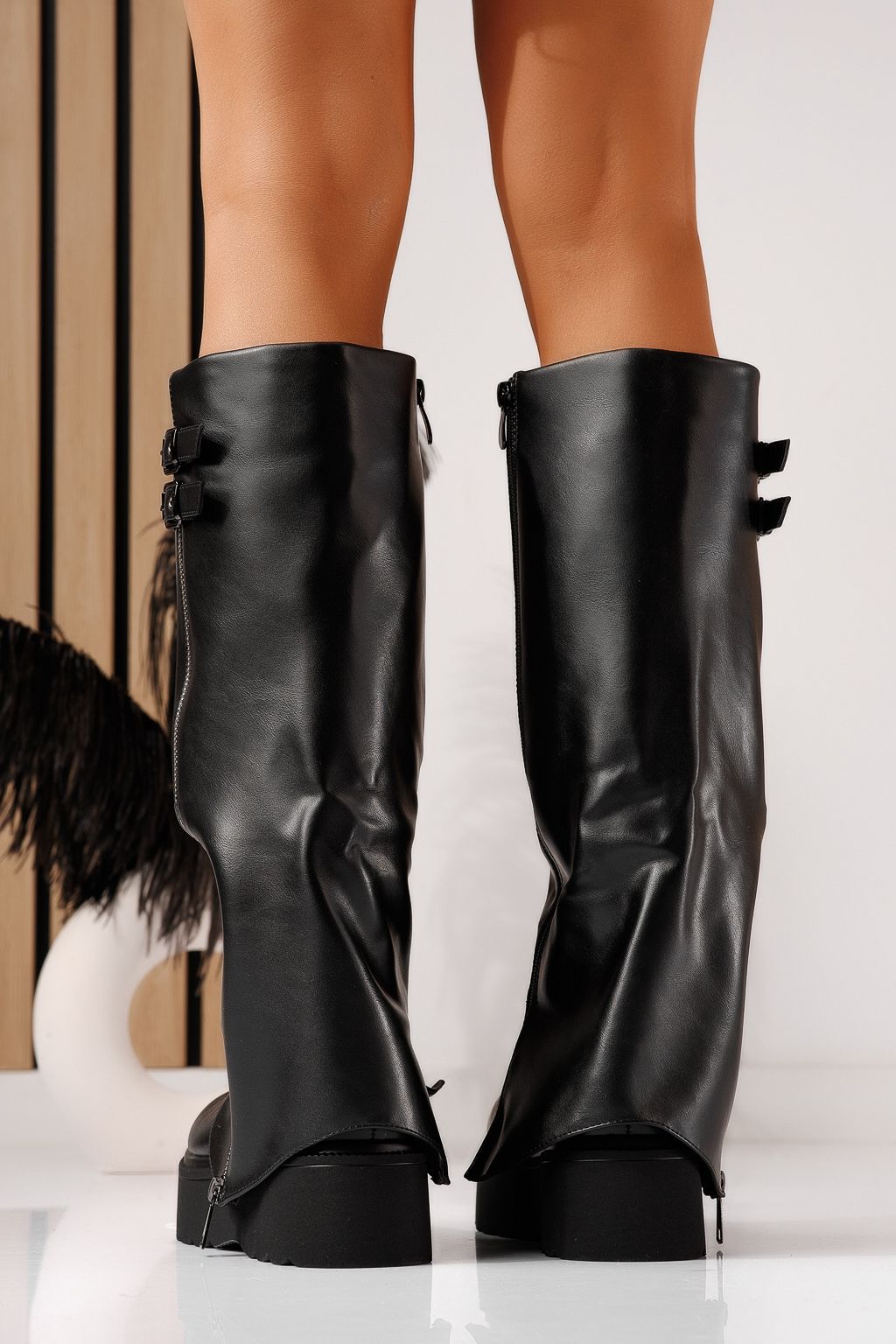 Къси дамски чизми подплатени с пух черни от еко кожа Nulefer #23047