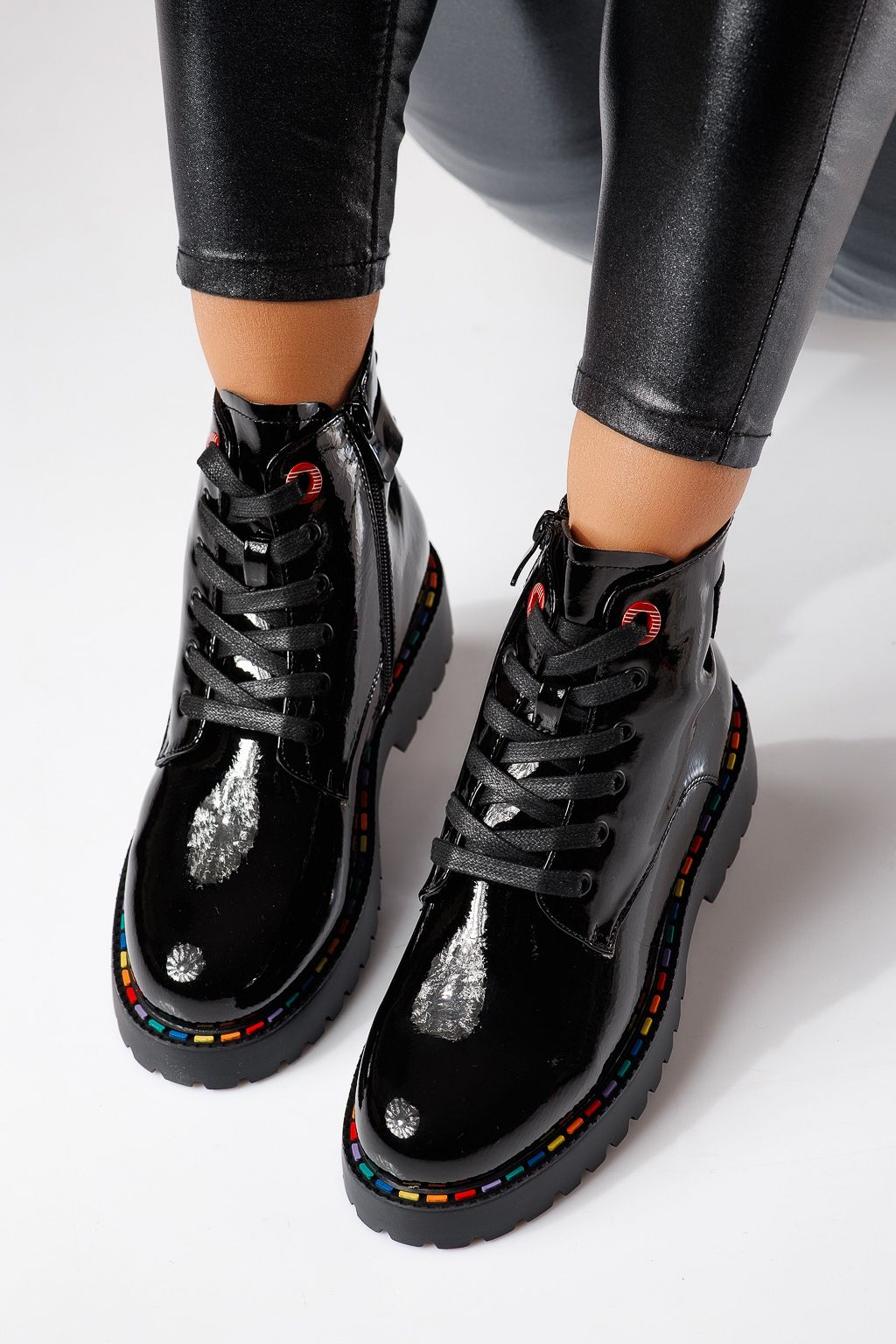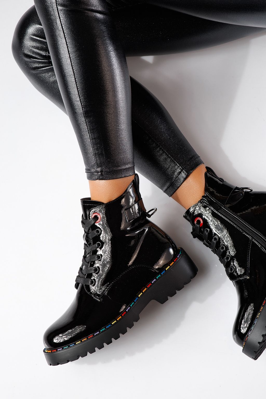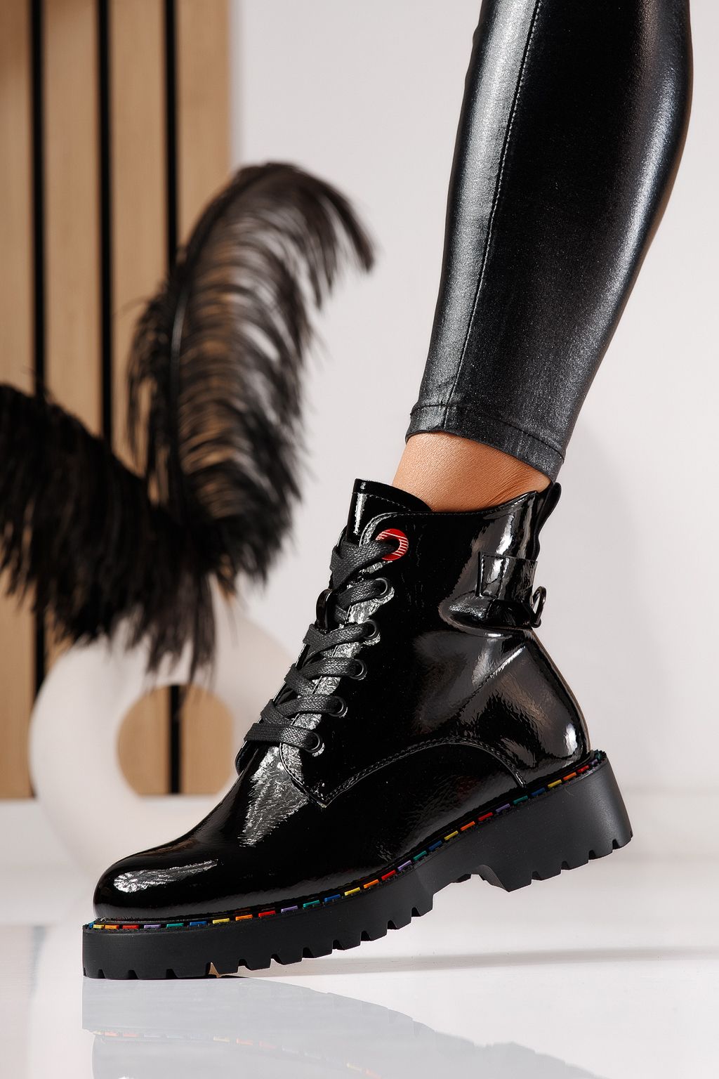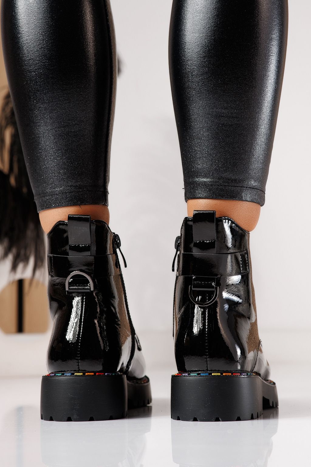 Дамски боти подплатени с пух черни от лачена еко кожа Sevda #23049