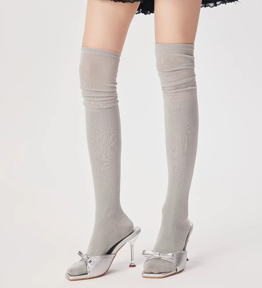 Начало Дамско облекло Дамски сиви дълги чорапи Alis #A1303