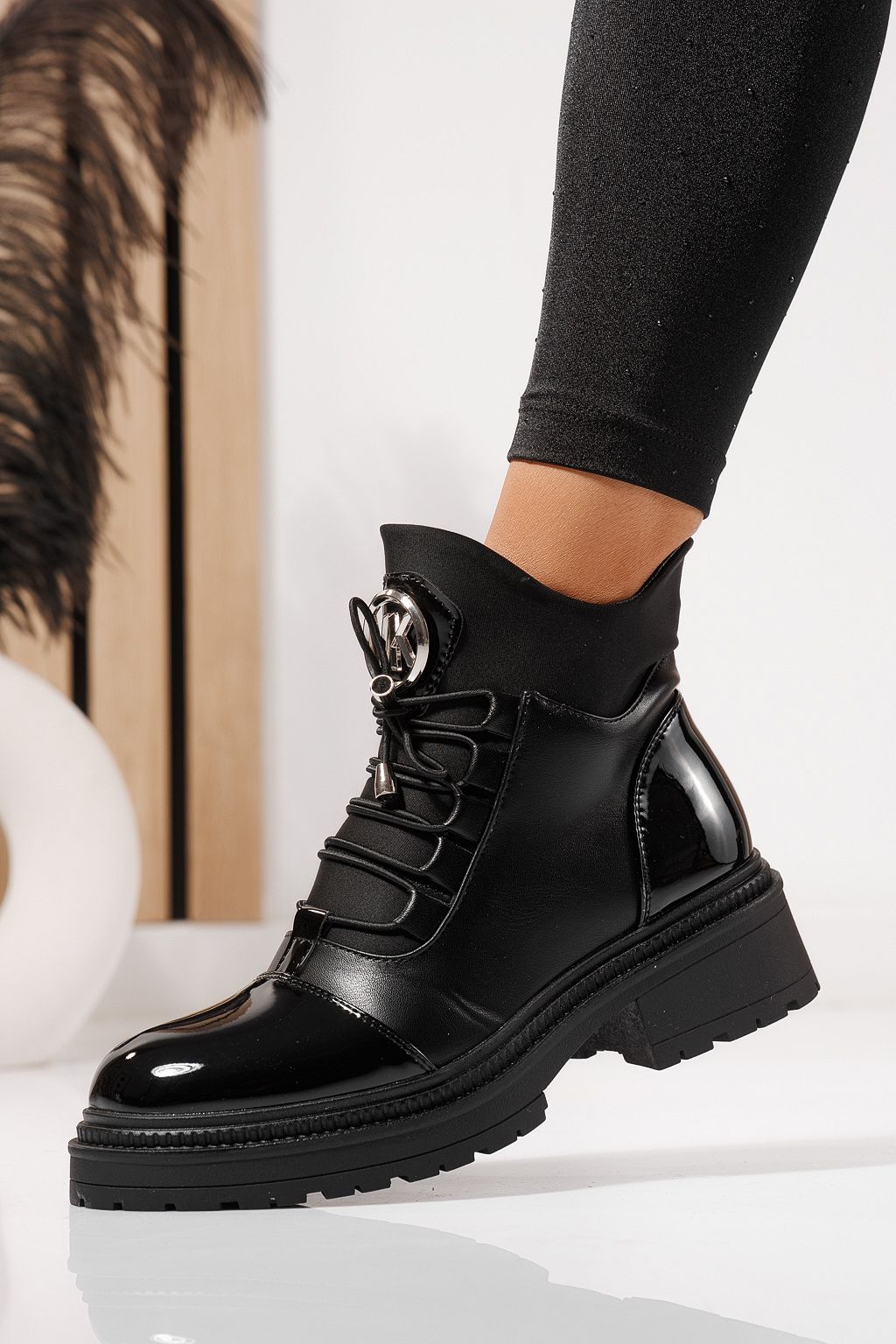 Начало Всички продукти ботуши за жени Дамски боти подплатени с пух черни от еко кожа lacuita Nami #23056