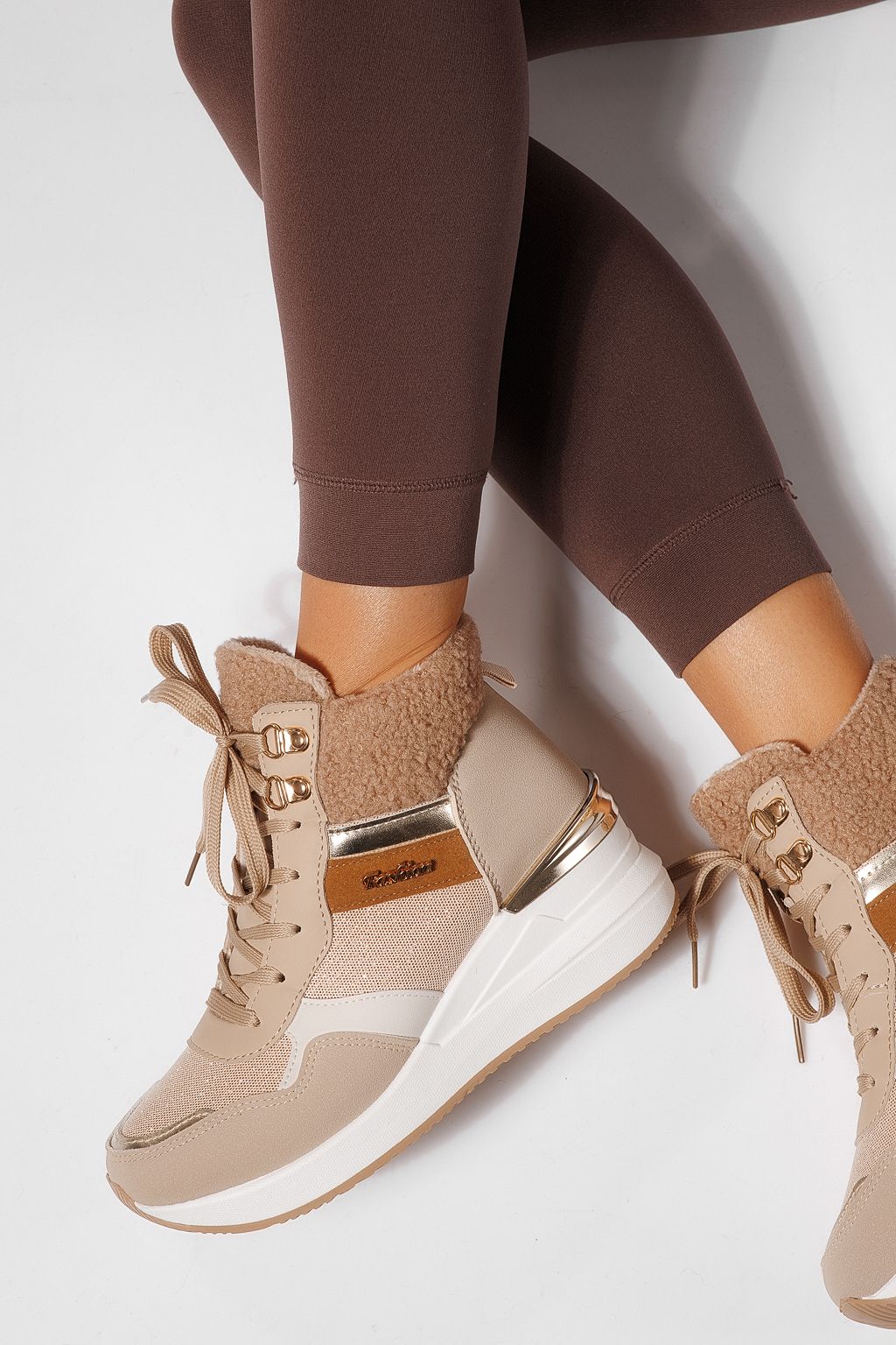 Дамски боти подплатени каки от обърната еко кожа Ariana #23059