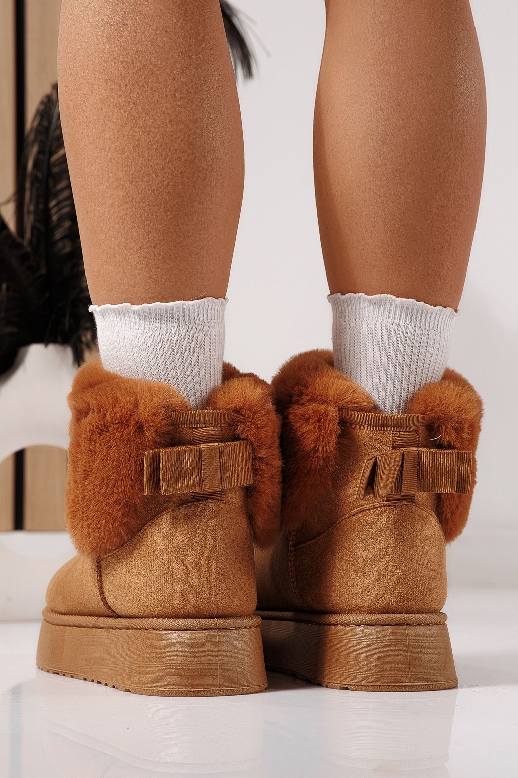 Дамски къси чизми подплатени с пух тип UGG кафяв от обърната еко кожа Beatrice #23068