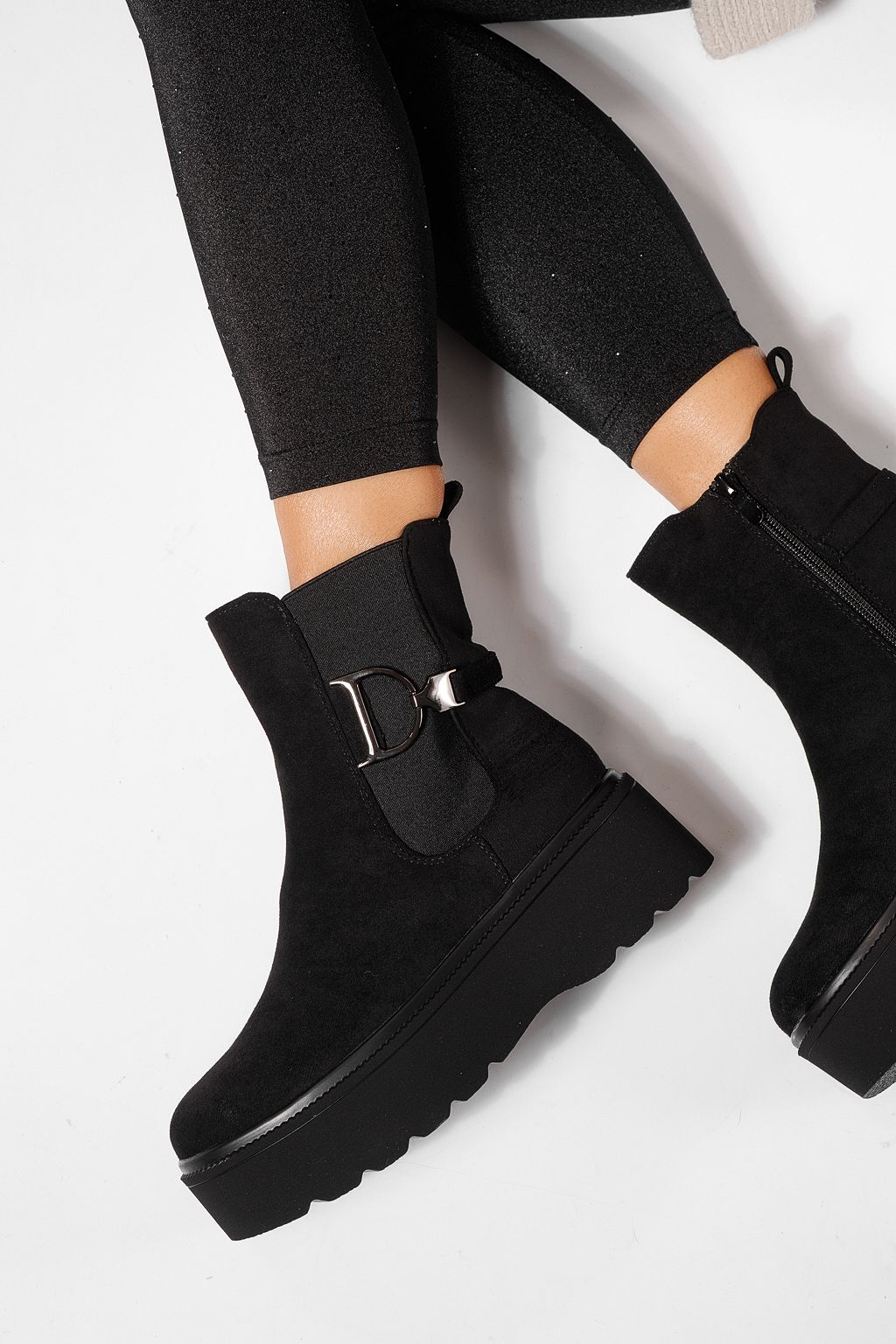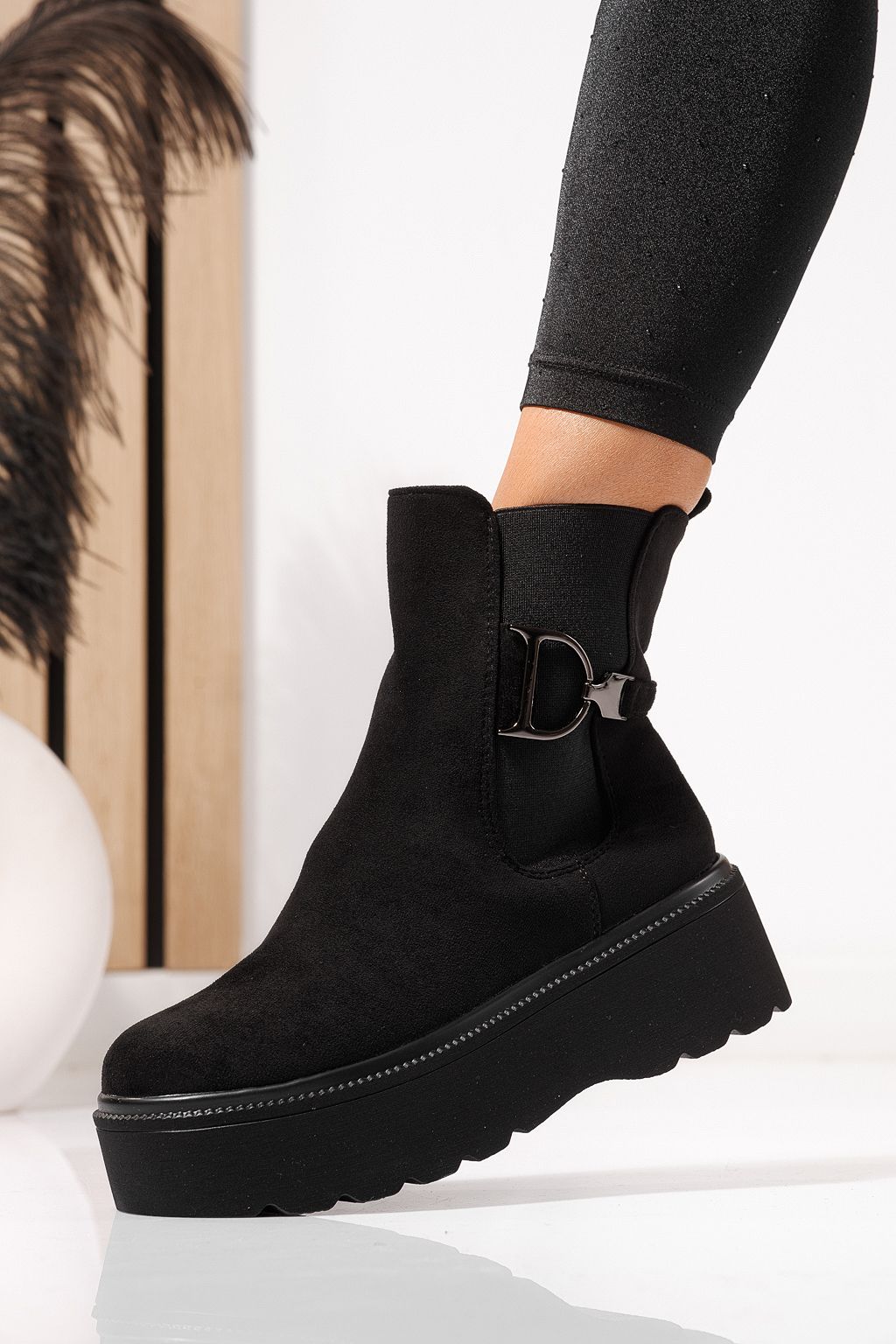 Дамски боти подплатени с пух черни от обърната еко кожа Dalia #23075
