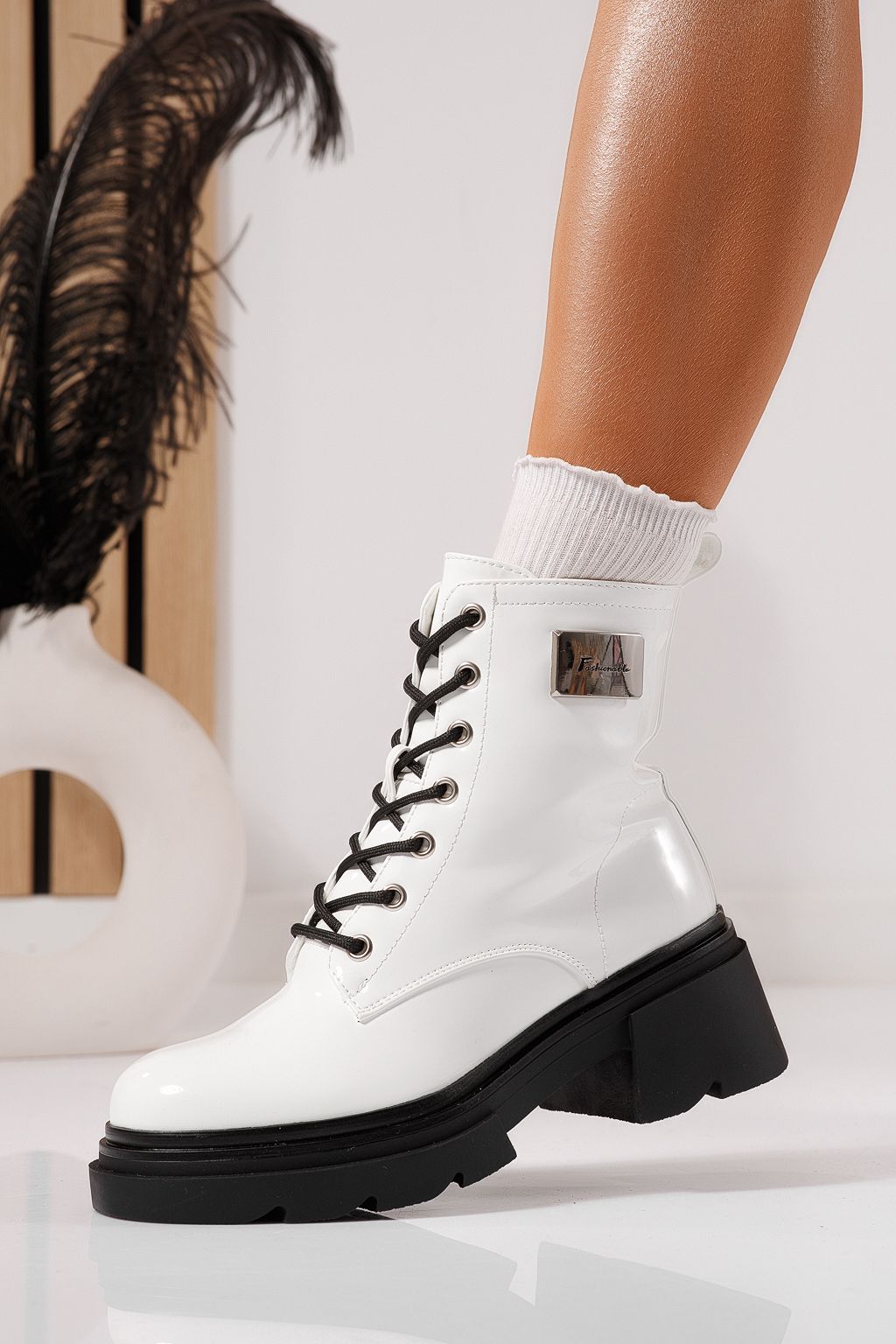 Дамски боти подплатени с пух бели от лачена еко кожа Joplin #23082