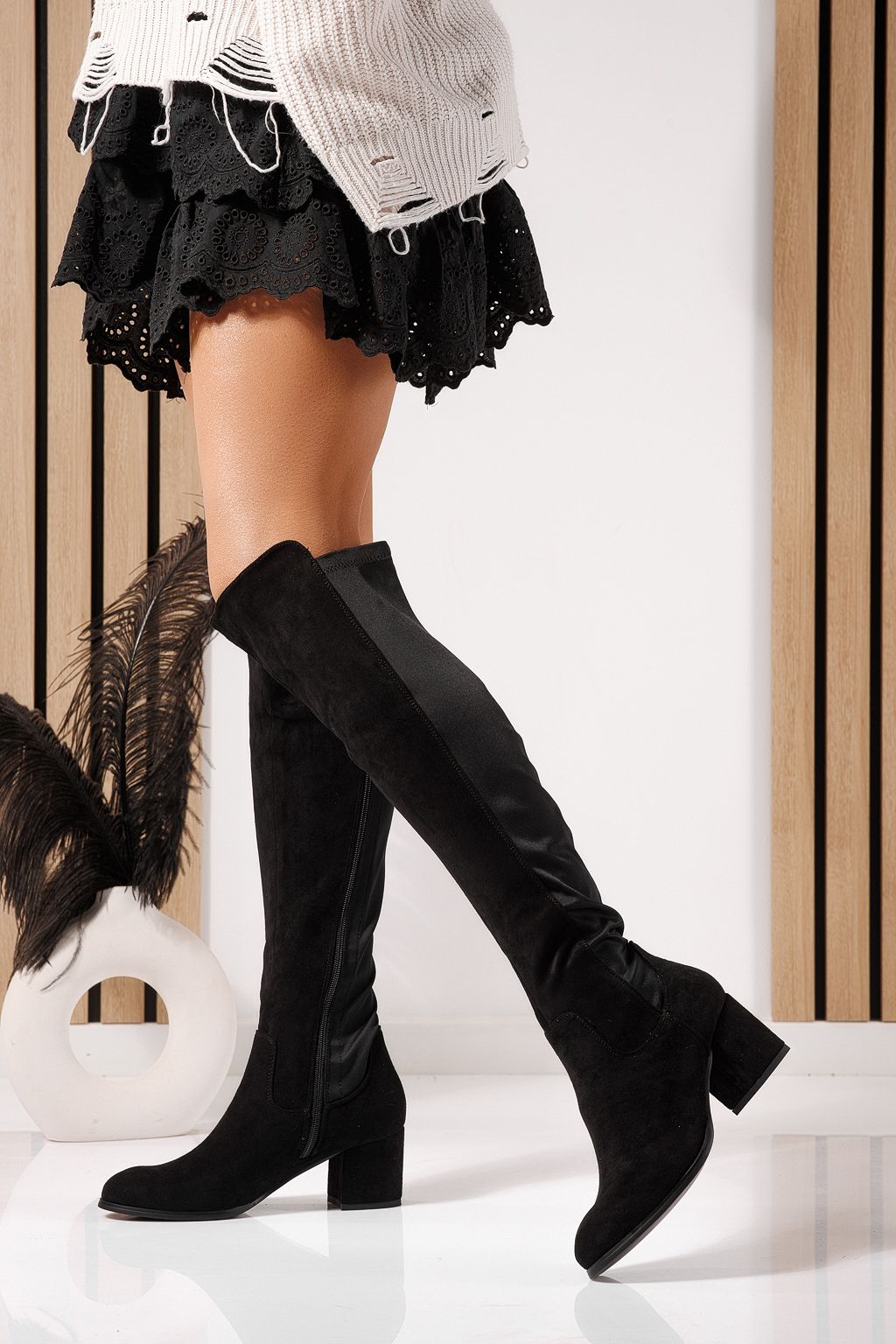 Дамски дълги чизми подплатени черни от обърната еко кожа Rain #23102