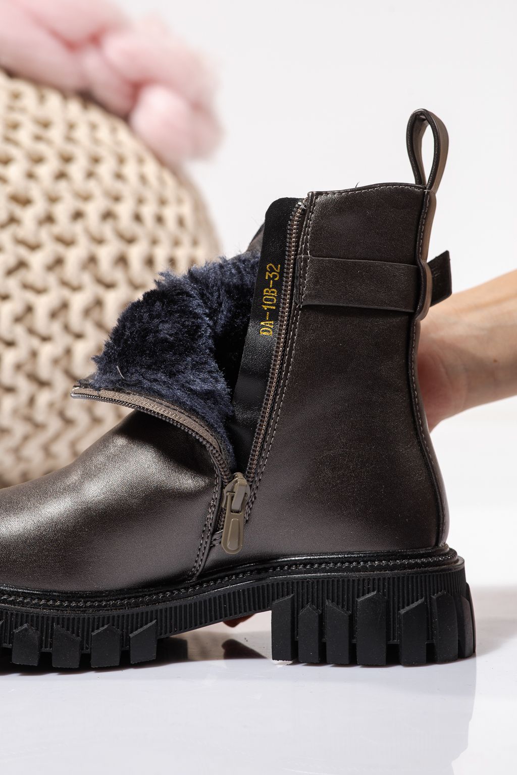 Боти за момичета подплатени с пух сиви от еко кожа Sara #23105