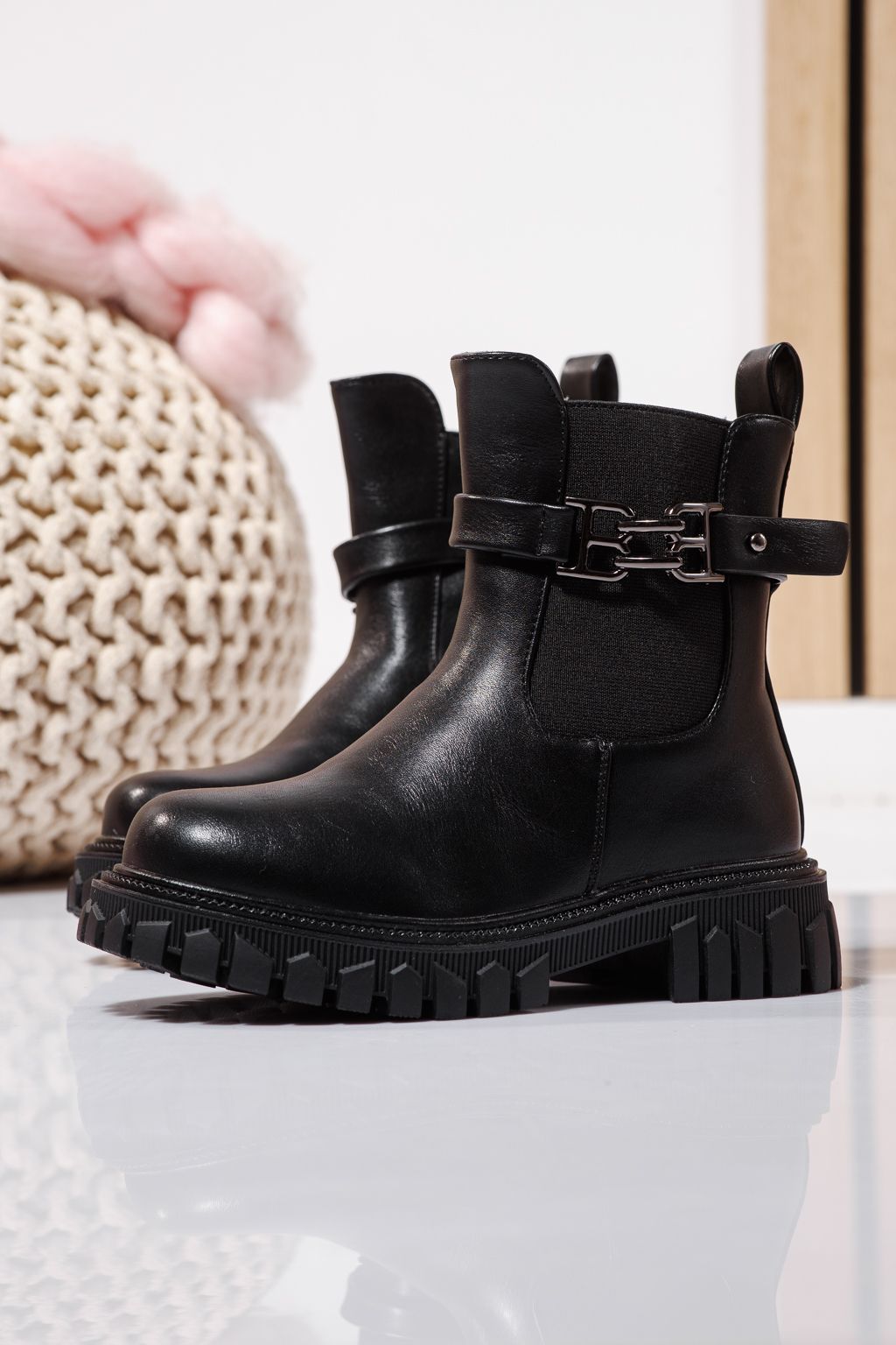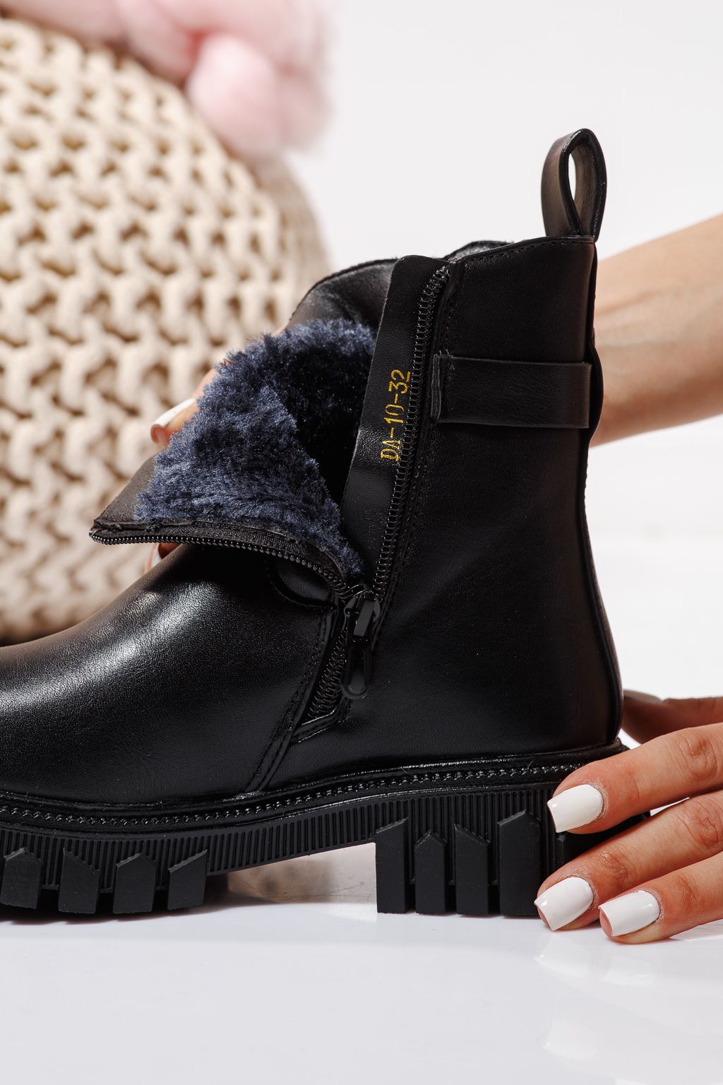 Боти за момичета подплатени с пух черни от еко кожа Sara #23106
