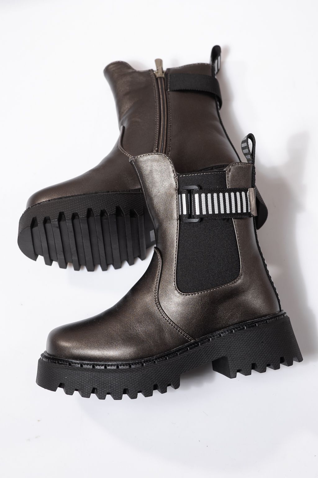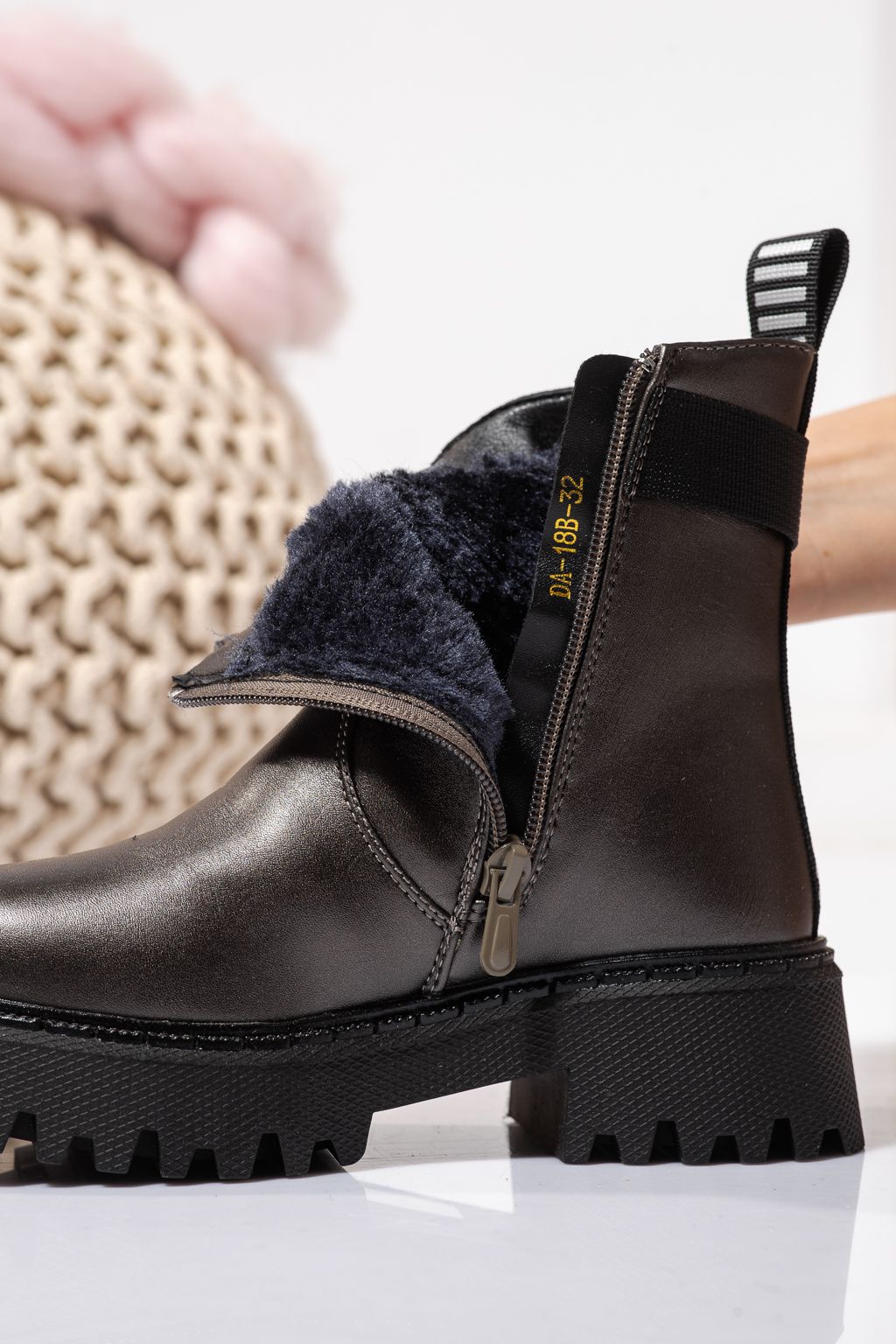 Боти за момичета подплатени с пух сиви от еко кожа Talia #23107