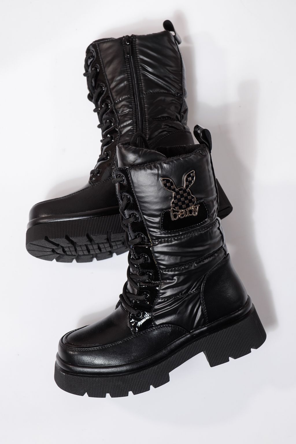 Боти за момичета подплатени с пух черни от еко кожа Dalia #23117