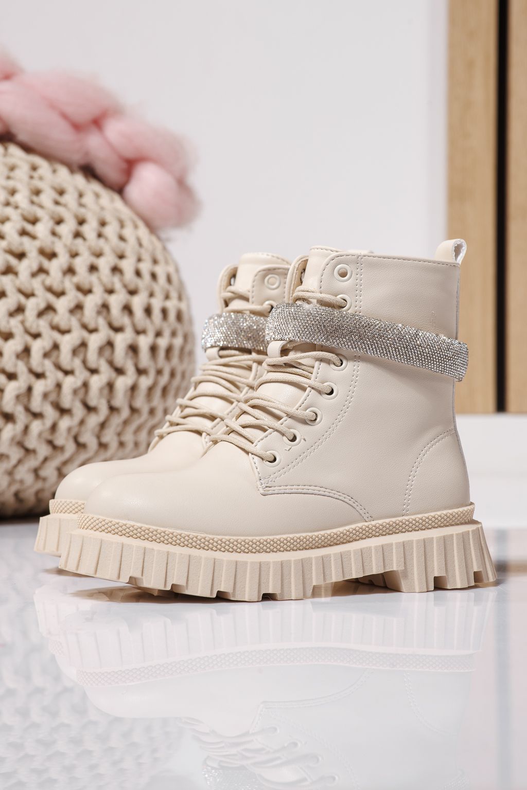 Боти за момичета подплатени с пух бежови от еко кожа Dora #23121