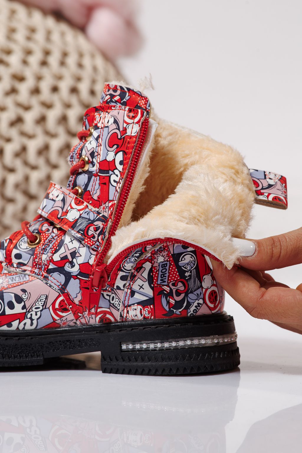 Боти за момичета подплатени с пух червен от еко кожа Eliza #23130