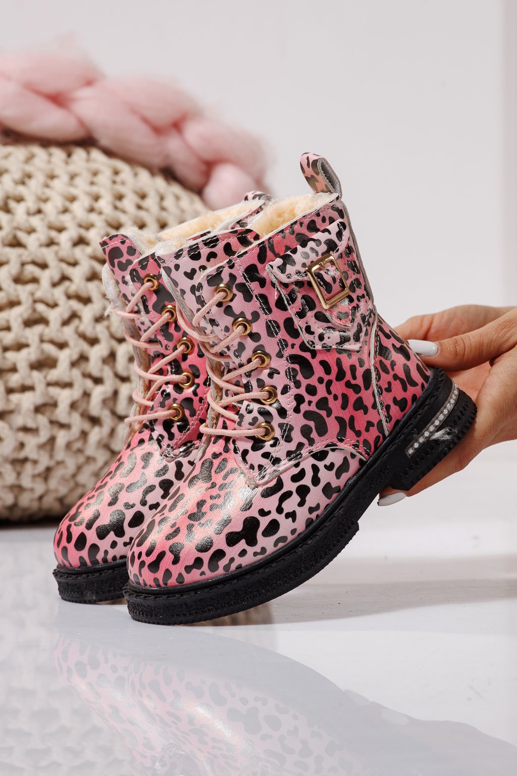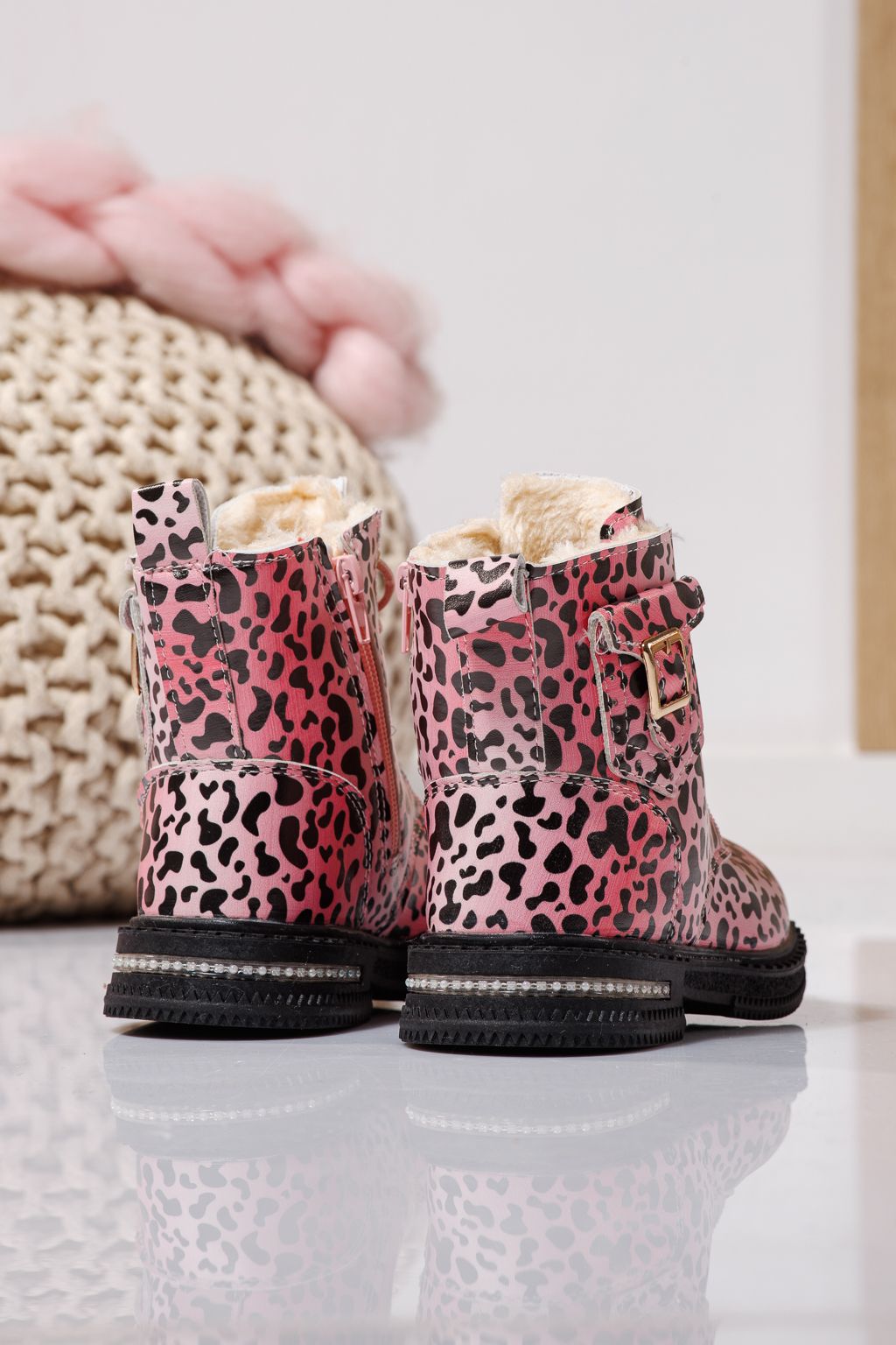 Боти за момичета подплатени с пух розов от еко кожа Iris #23137