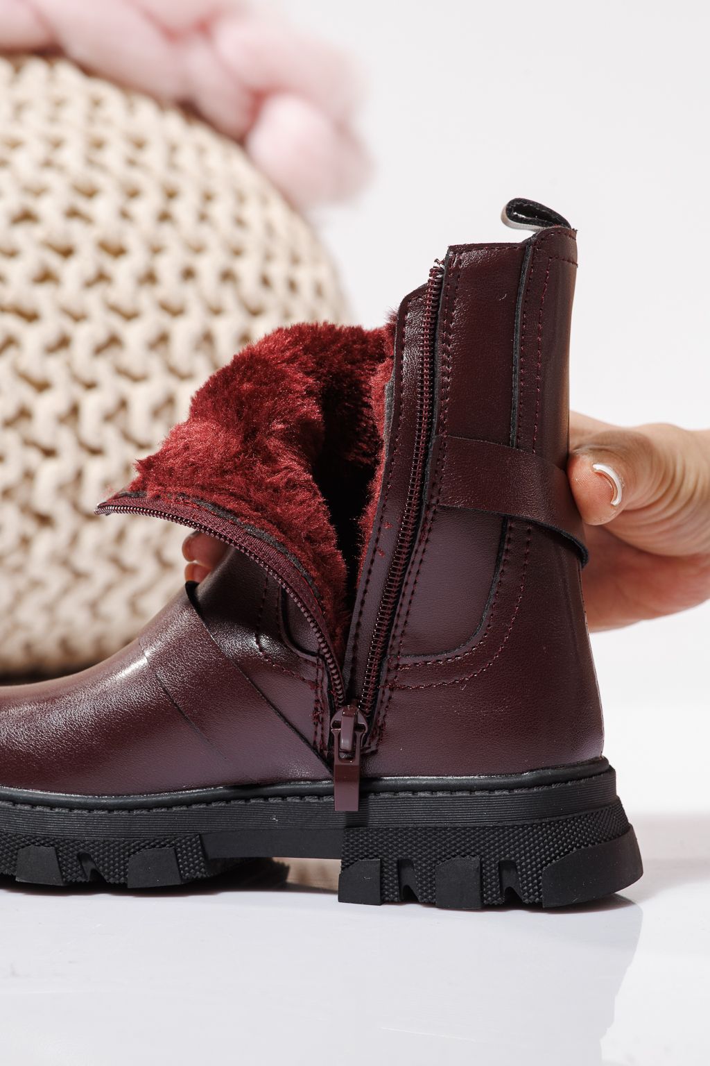 Боти за момичета подплатени с пух червен от еко кожа Marisa #23141