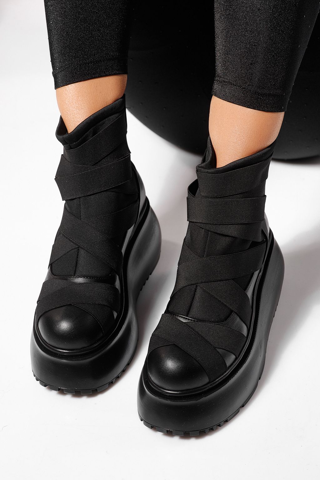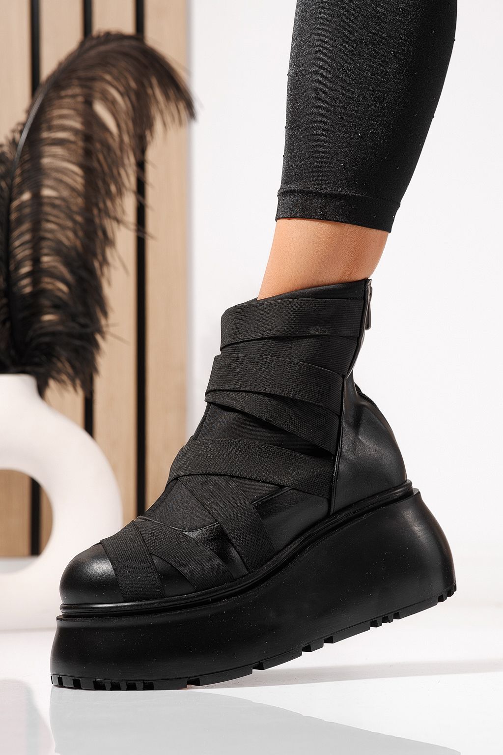 Дамски боти подплатени черни от еко кожа Ines #23167