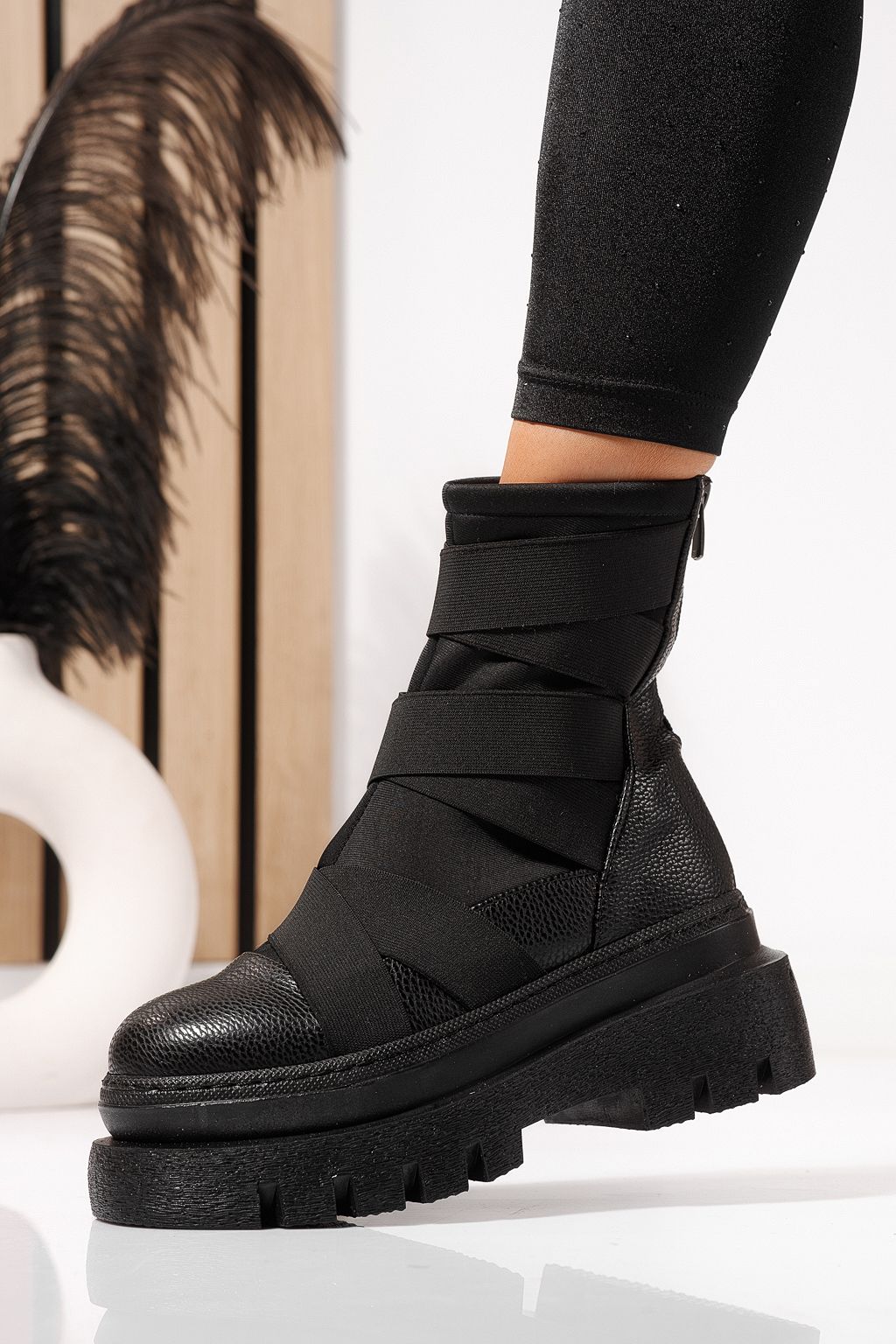 Начало Всички продукти ботуши за жени Зимни боти Дамски черни подплатени ботуши от екокожа Julia #23176