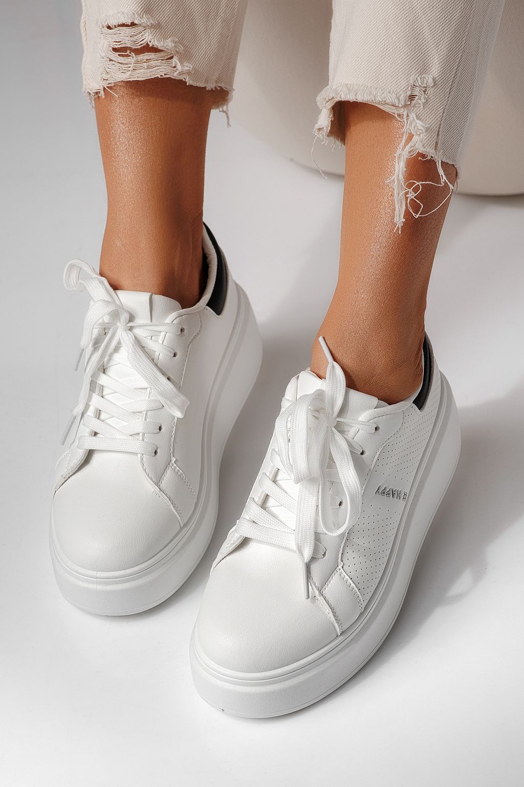 Дамски маратонки с платформа бели от еко кожа Ada #24002