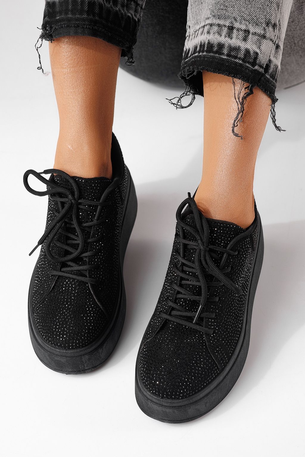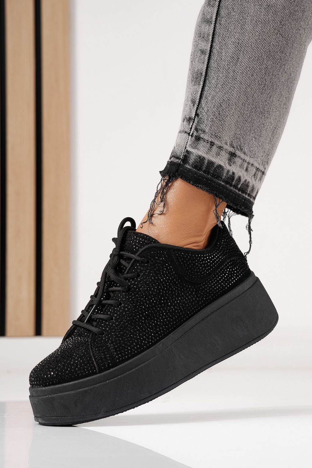 Дамски маратонки черни от текстилен материал Bianca #24052