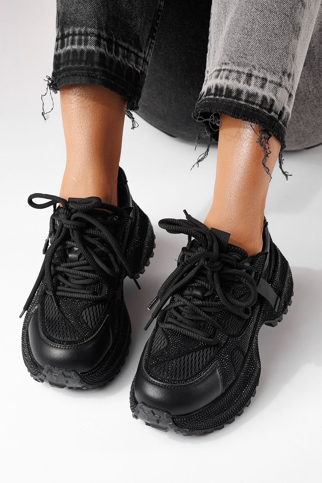 Начало Всички продукти Дамски кецове Дамски маратонки черни от текстилен материал Cezara #24054
