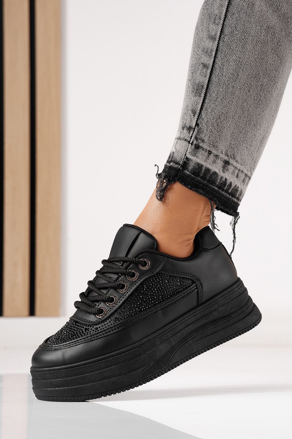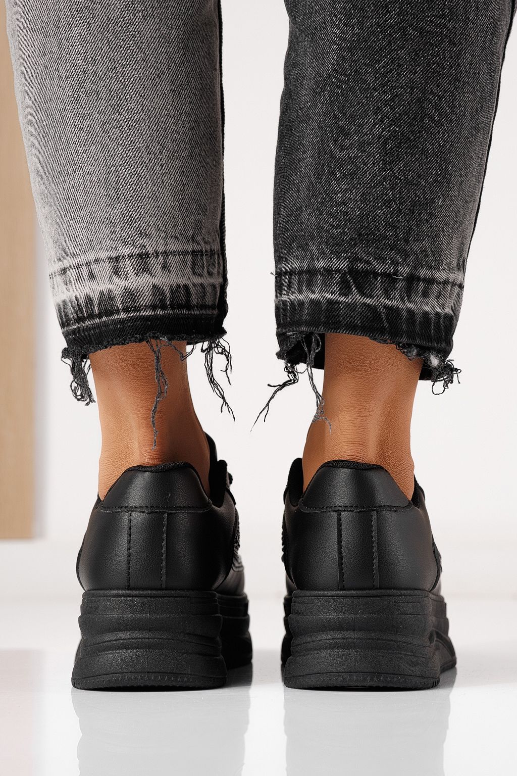 Дамски маратонки черни от еко кожа Clara #24056