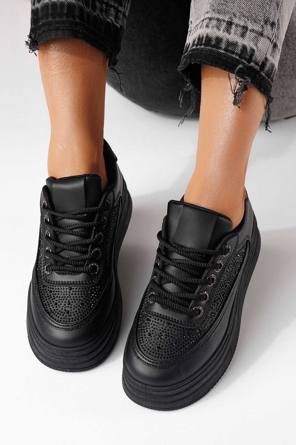 Начало Всички продукти Дамски кецове Дамски маратонки черни от еко кожа Clara #24056