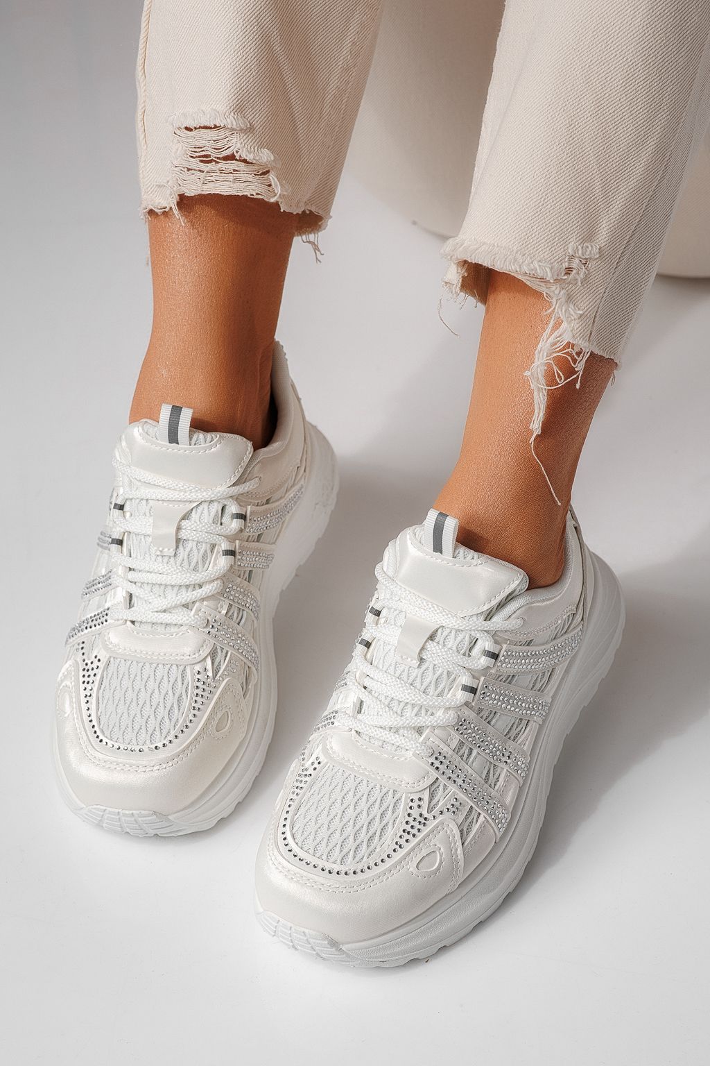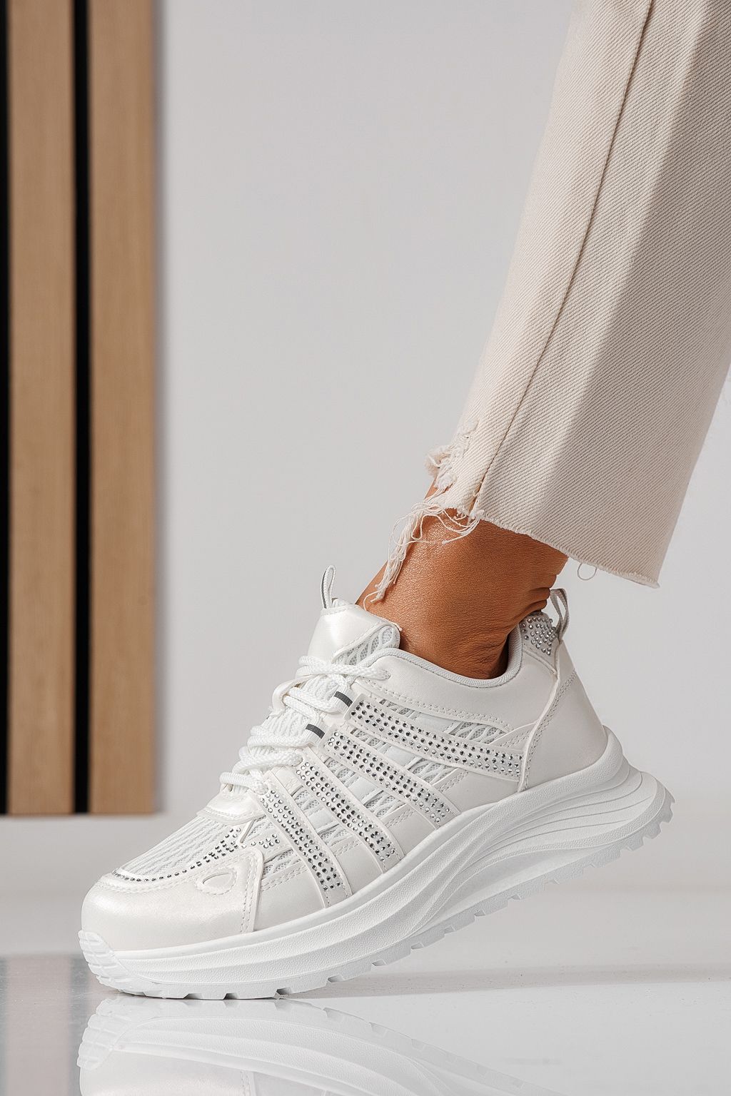 Дамски маратонки бели от еко кожа Carolina #24061